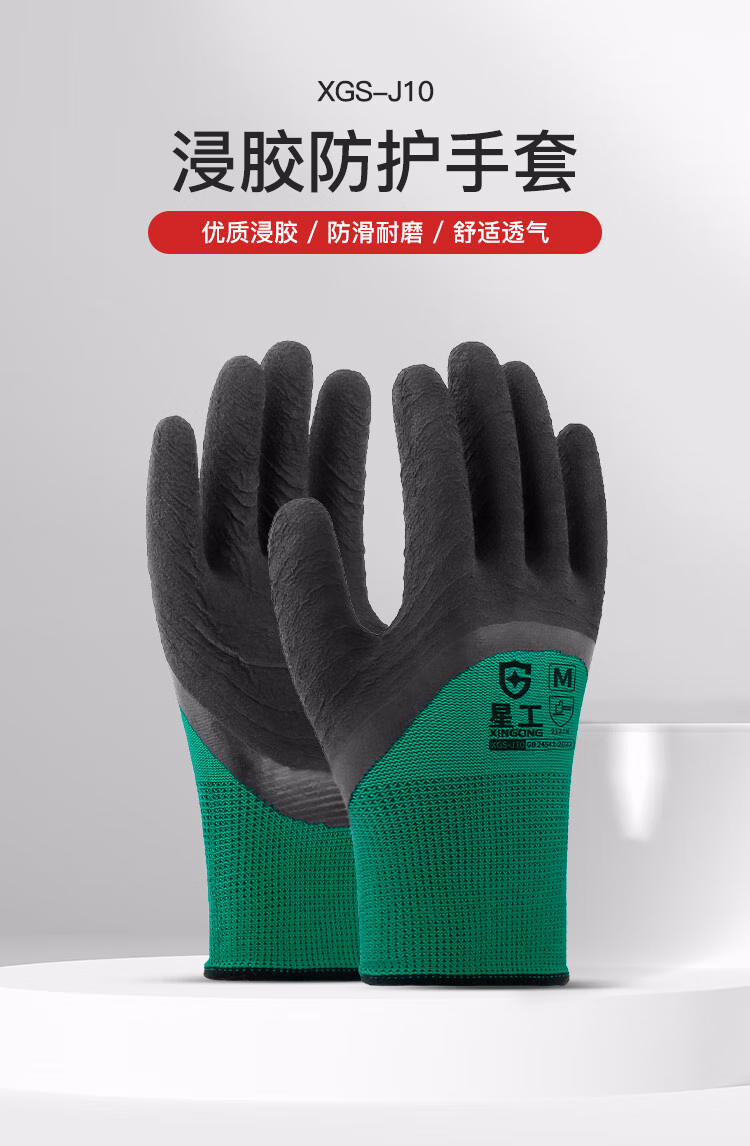包装清单  :   星工 浸胶劳保手套 耐磨防滑挂胶工业工地防护手套 12付XGS-J10