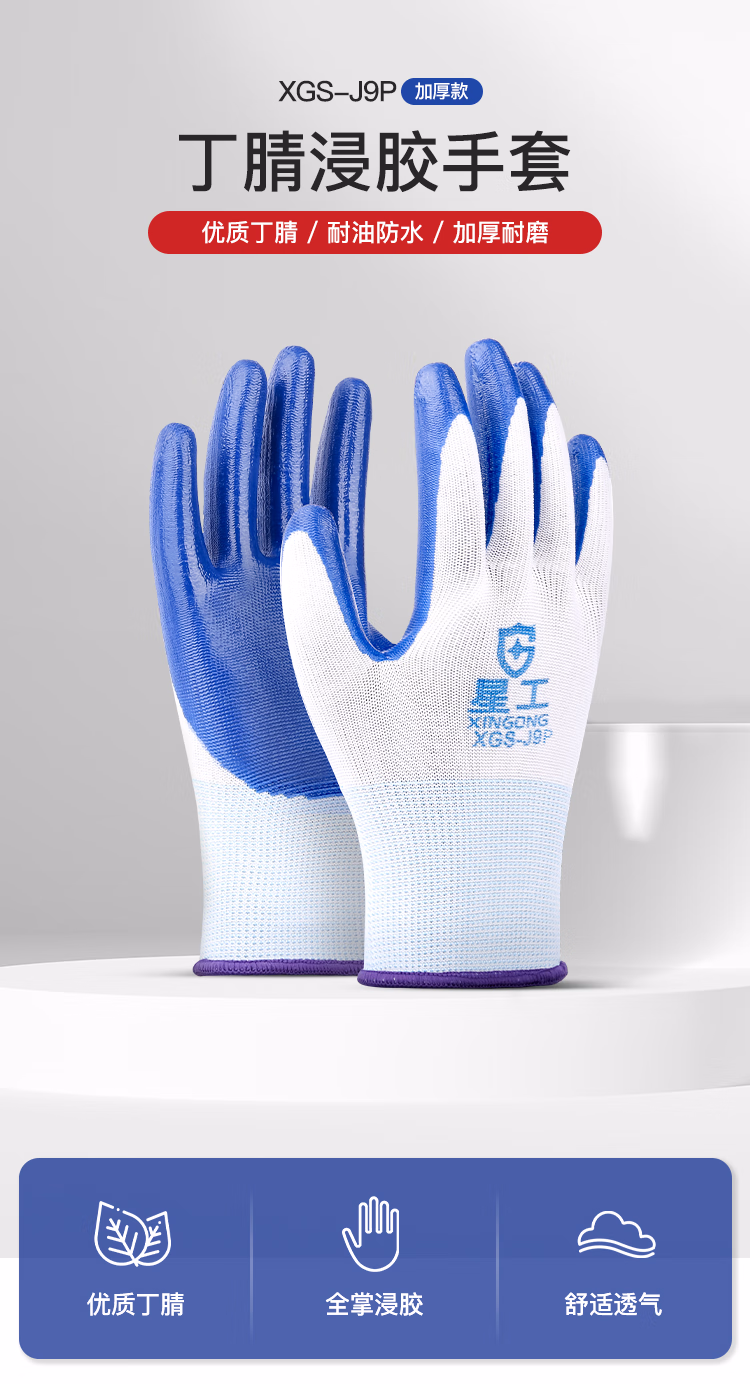 包装清单  :   星工(XINGGONG)手套劳保 丁腈加厚耐磨防滑 浸胶手套工地搬运XGS-J9P 12付