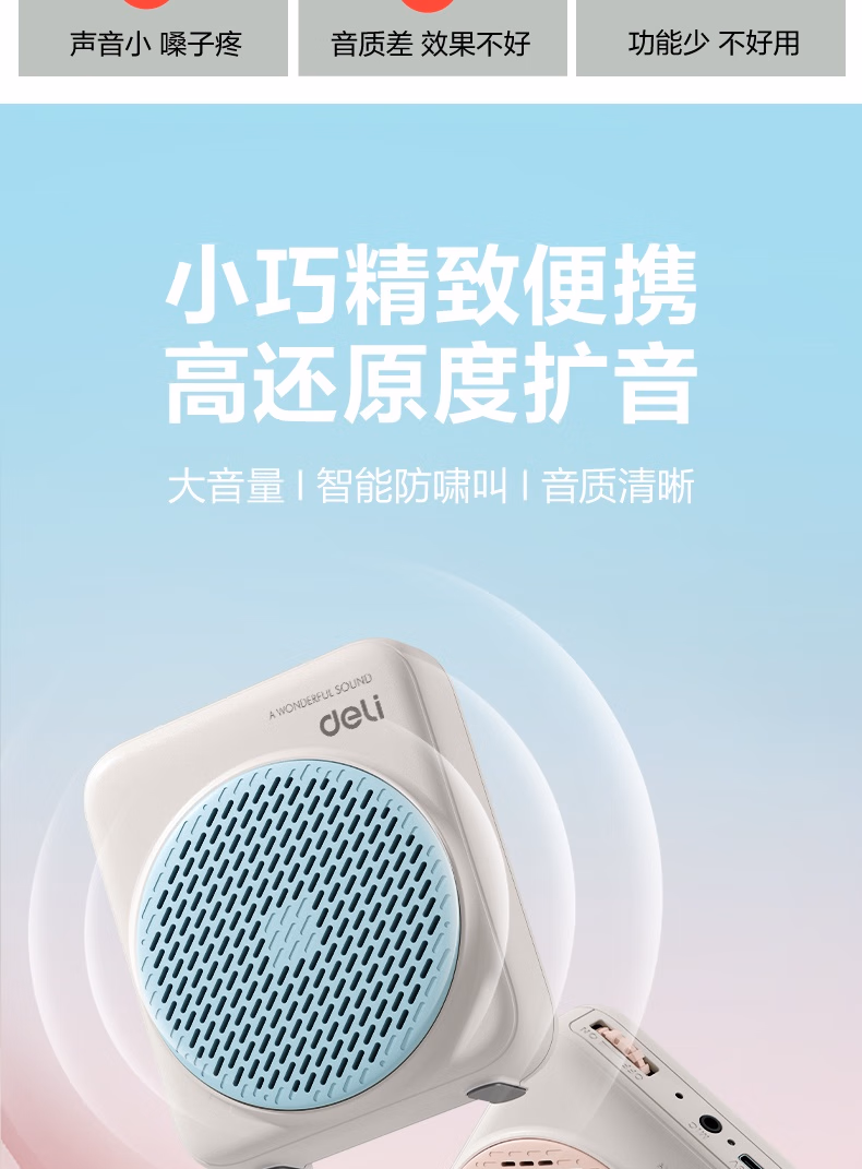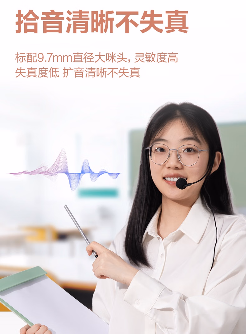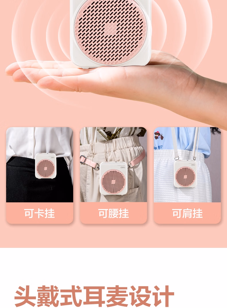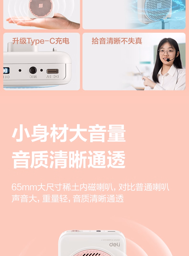 包装清单  :   得力(deli)小蜜蜂扩音器老师教学讲课教学上课讲课喇叭腰挂麦克风导游便携式喊话神器