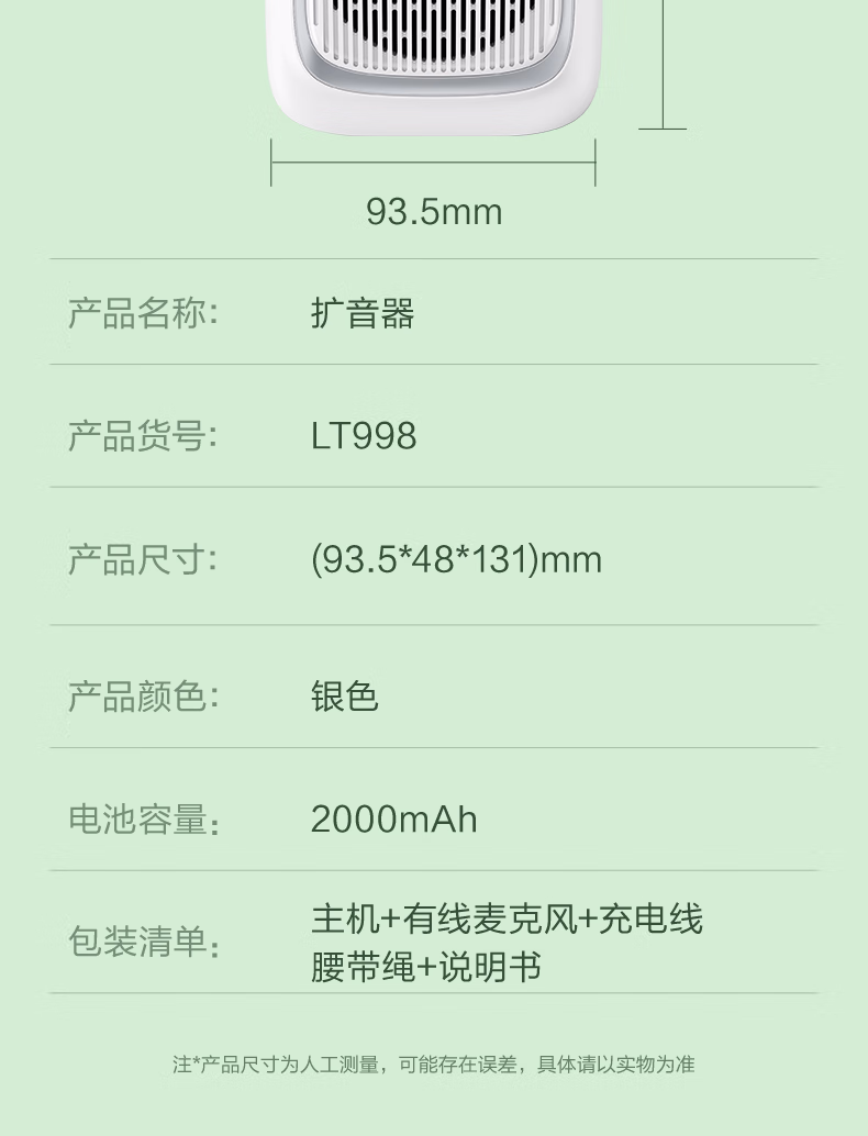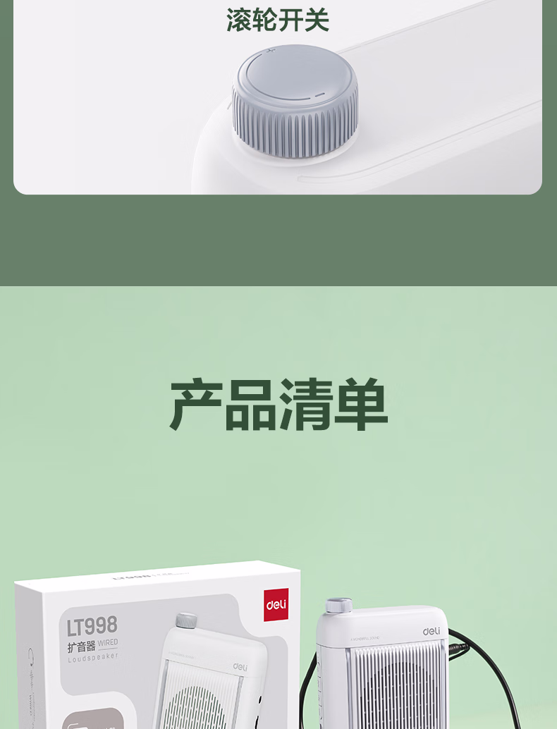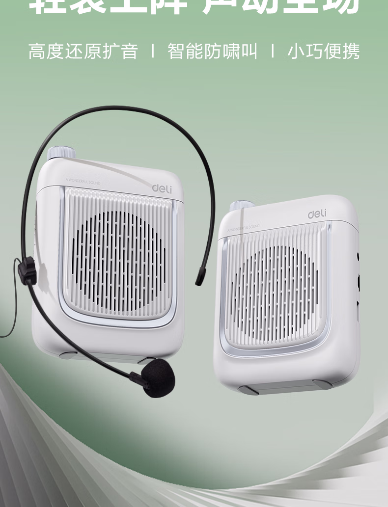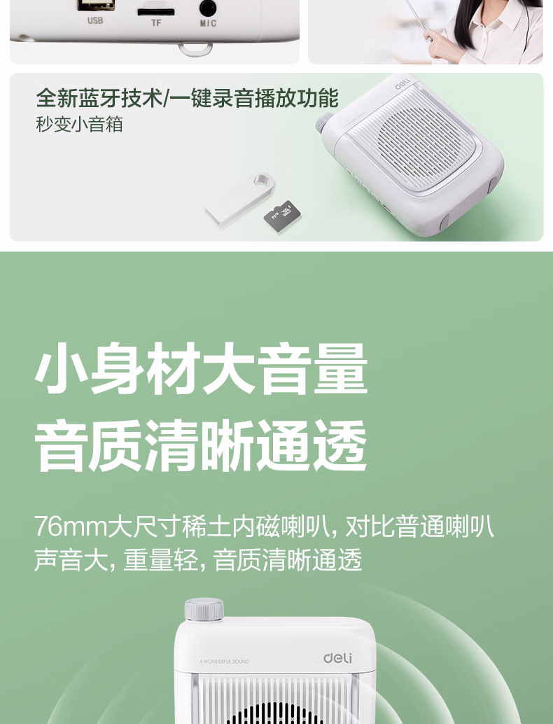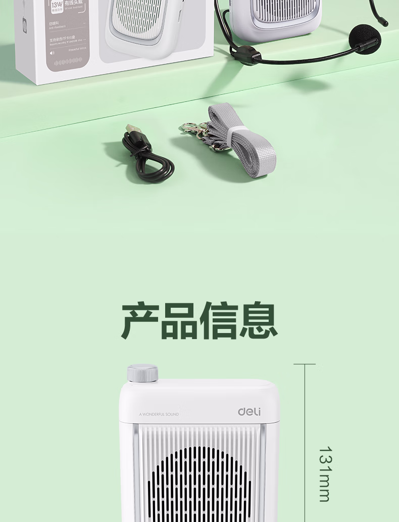 包装清单  :   得力(deli)13W小蜜蜂扩音器教师喇叭导游腰挂麦克风蓝牙音箱便携喊话器讲课教学喇叭大音量