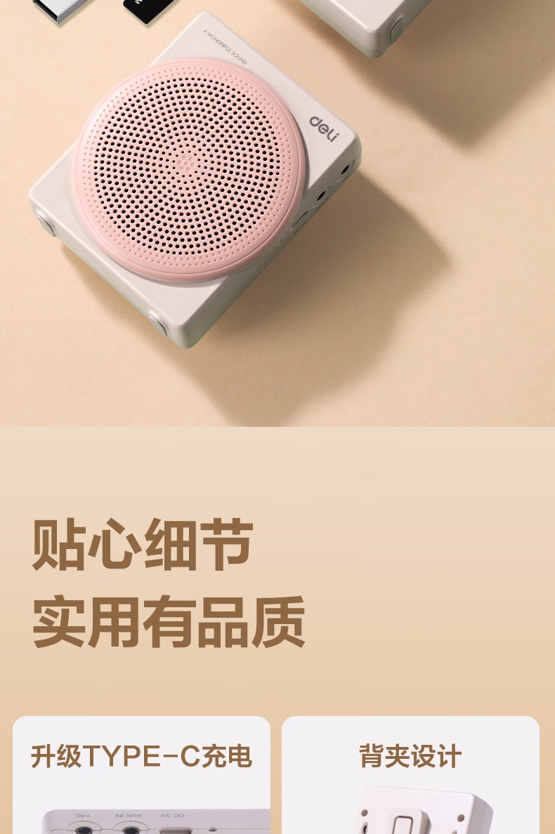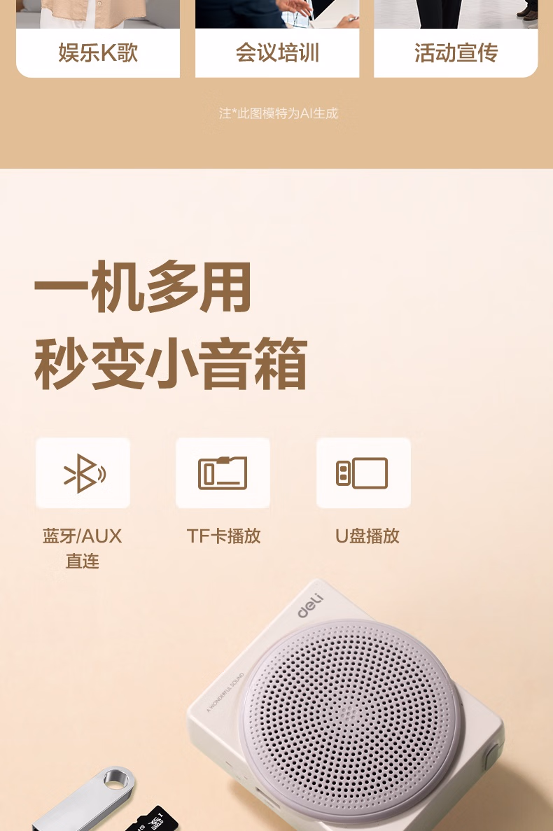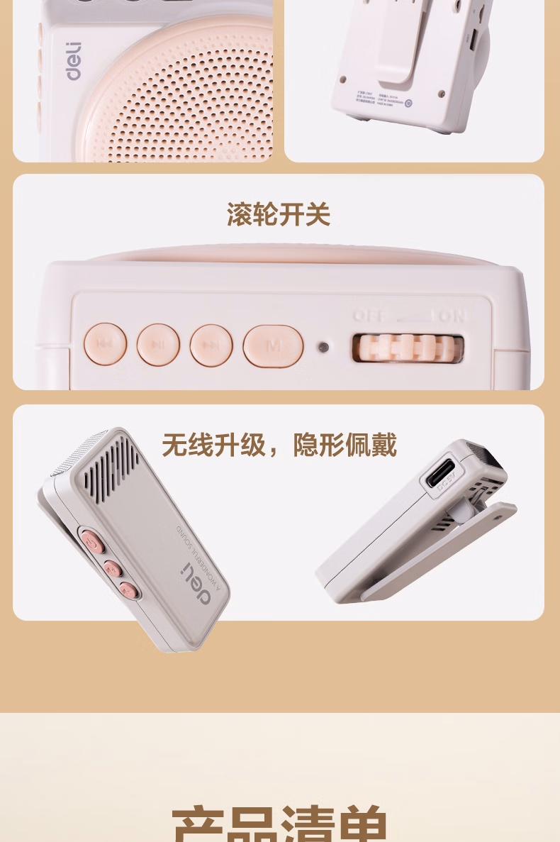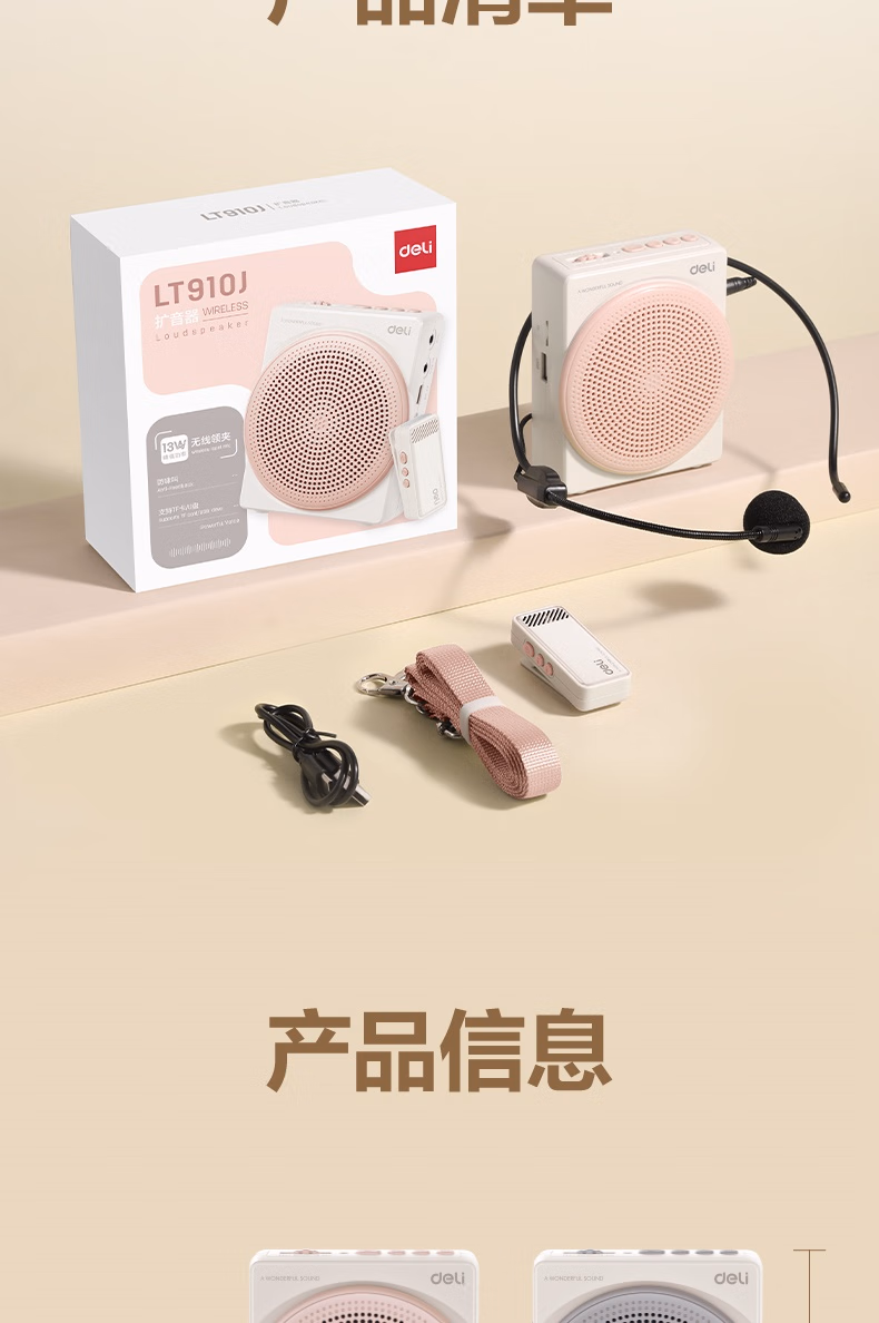 包装清单  :   得力(deli)13W无线领夹小蜜蜂扩音器蓝牙音箱音响防啸叫U盘喇叭麦克风导游户外讲课