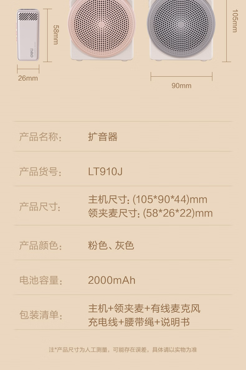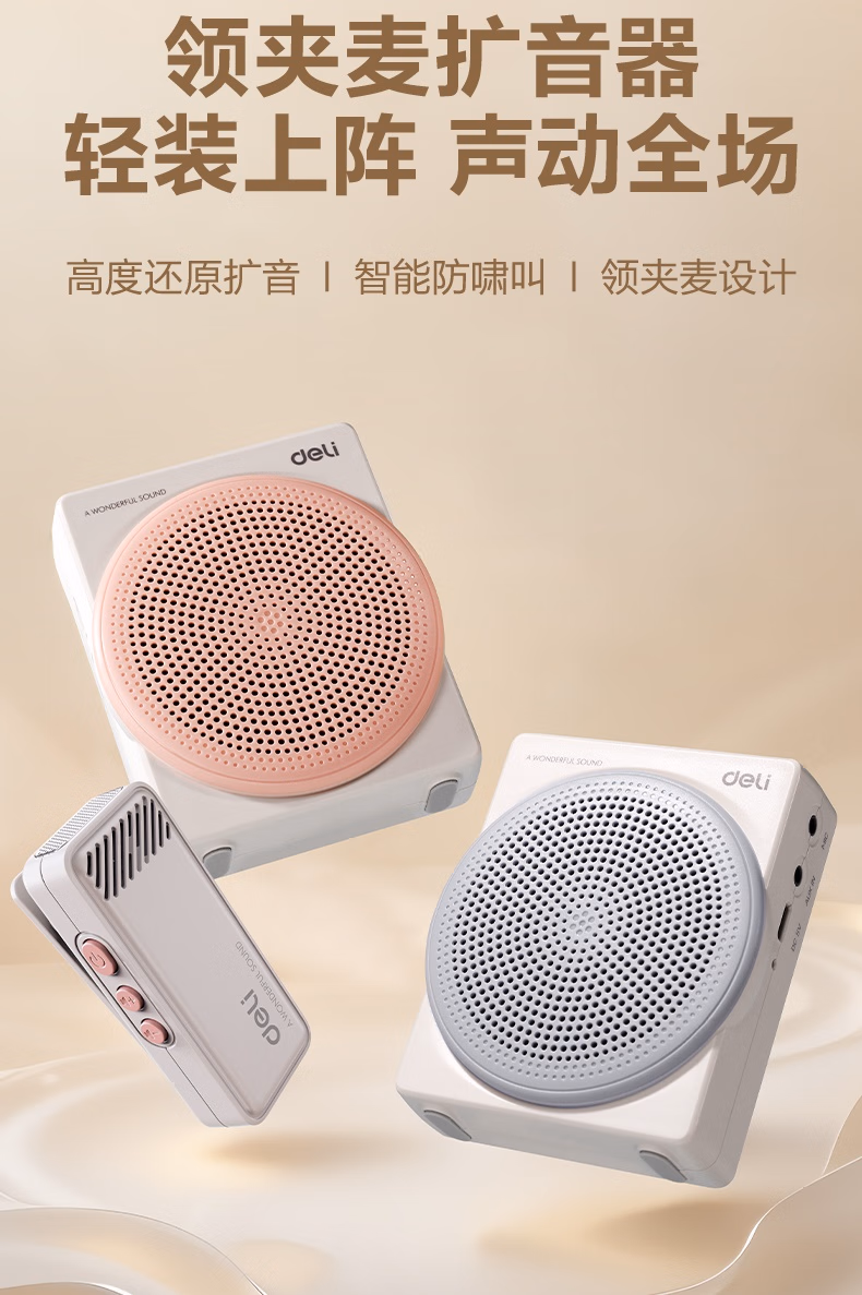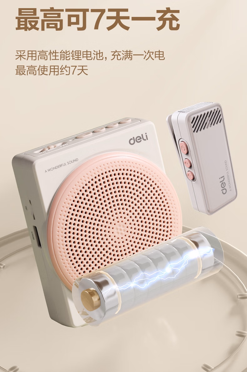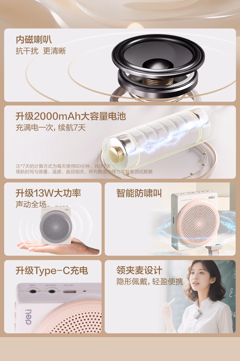 包装清单  :   得力(deli)13W无线领夹小蜜蜂扩音器蓝牙音箱音响防啸叫U盘喇叭麦克风导游户外讲课