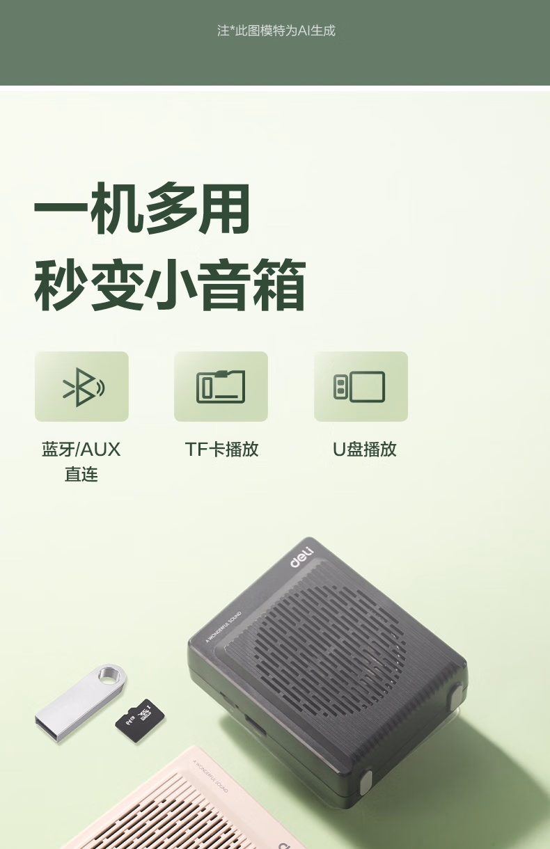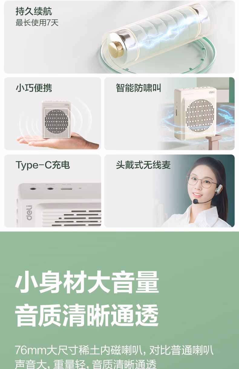 包装清单  :   得力(deli)13W无线头戴小蜜蜂扩音器教师专用蓝牙音箱音响防啸叫TF卡U盘喇叭麦克风