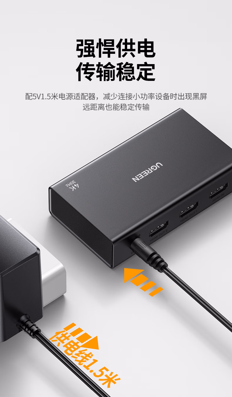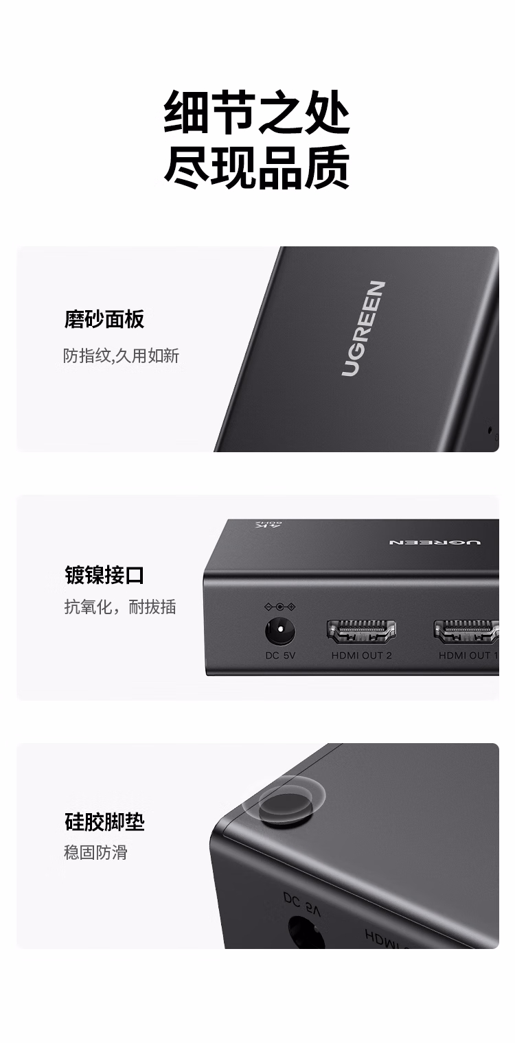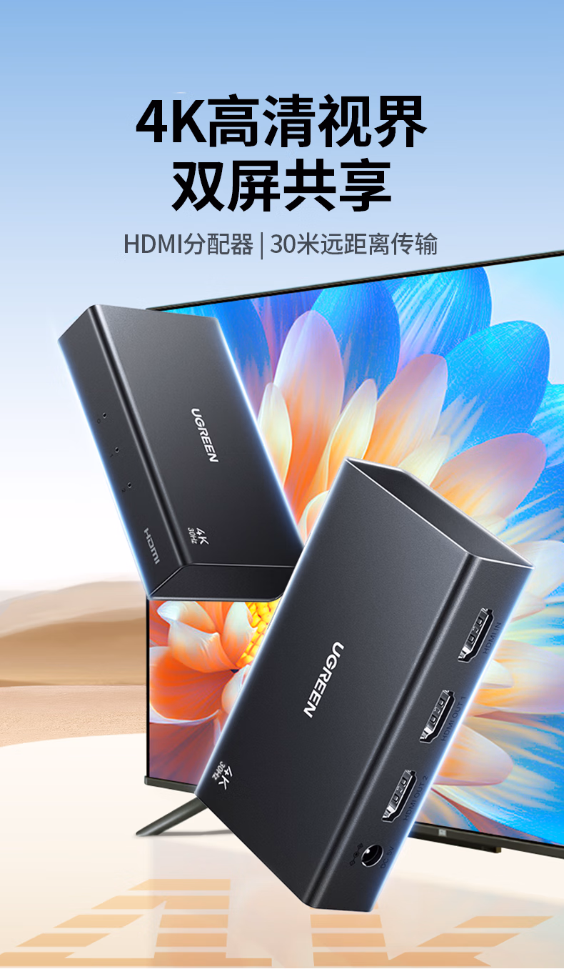 包装清单  :   HDMI一拖二分配器4K高清1分2同屏显示一进二出视频分屏扩展笔记本电脑接电视显示器投影仪90803