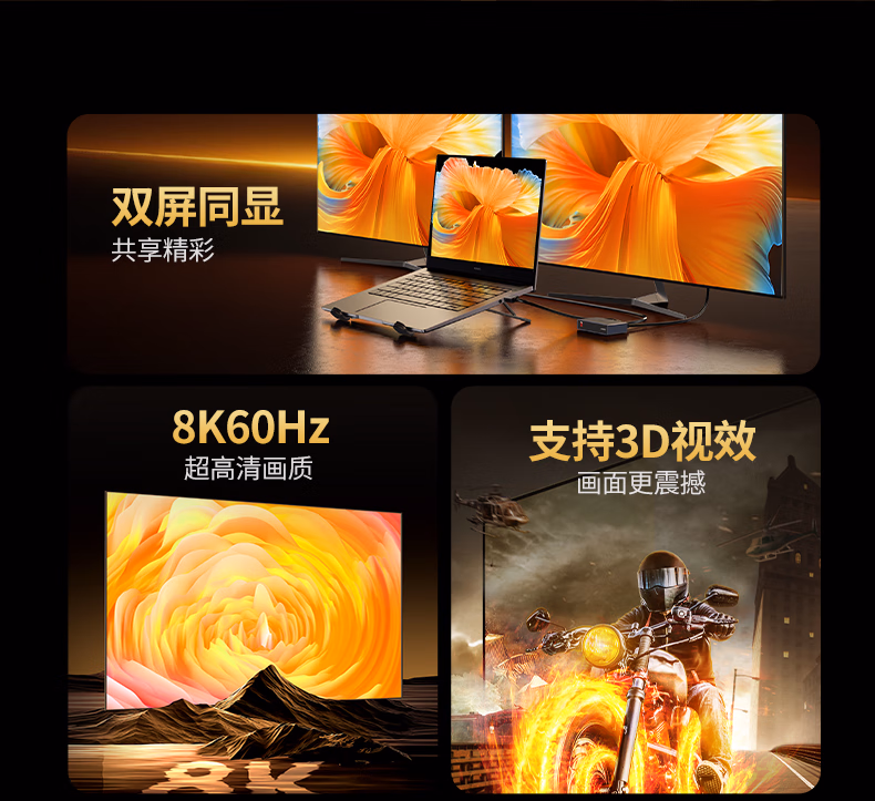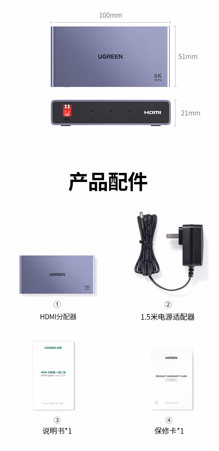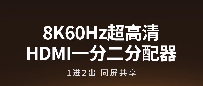 包装清单  :   HDMI2.1分配器8K60Hz双屏同显一分二1进2出一拖二视频分屏笔记本电脑接电视显示器投影仪25149