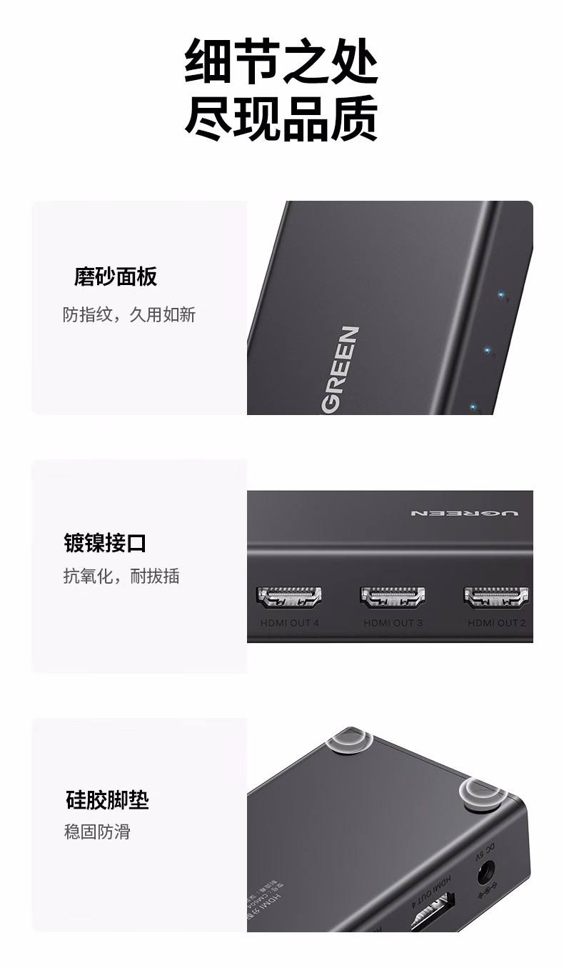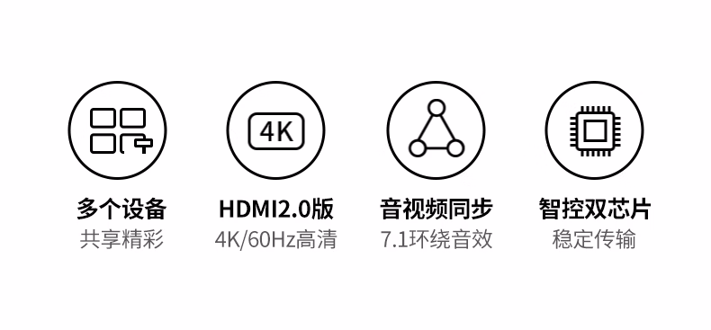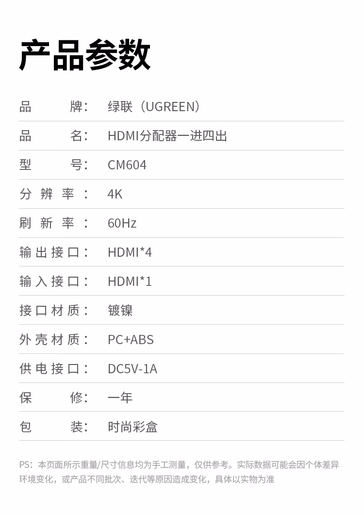 包装清单  :   HDMI2.0分配器一分四4K60Hz高清分屏器一拖四1进4出笔记本电脑接电视显示器投影仪/一分二/三90806
