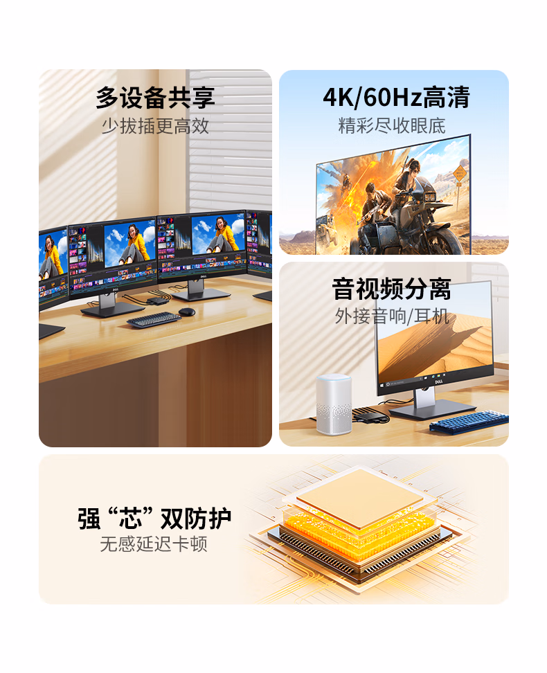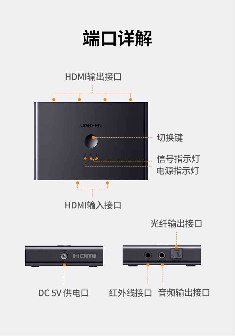 包装清单  :   HDMI2.0分配切换器二进四出4K60Hz高清视频2进4出兼容1分4笔记本电脑显示器接电视投影分屏 70690