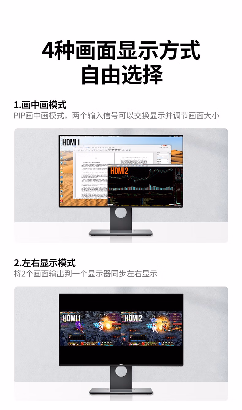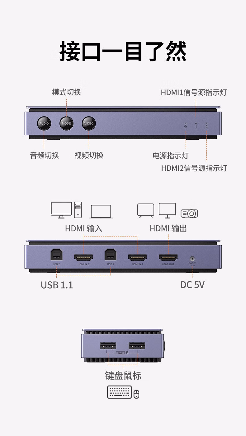 包装清单  :   HDMI画面分割器4K高清KVM切换器二进一出2进1出 鼠标穿屏 共享键盘鼠标显示器视频分屏拼接器80187