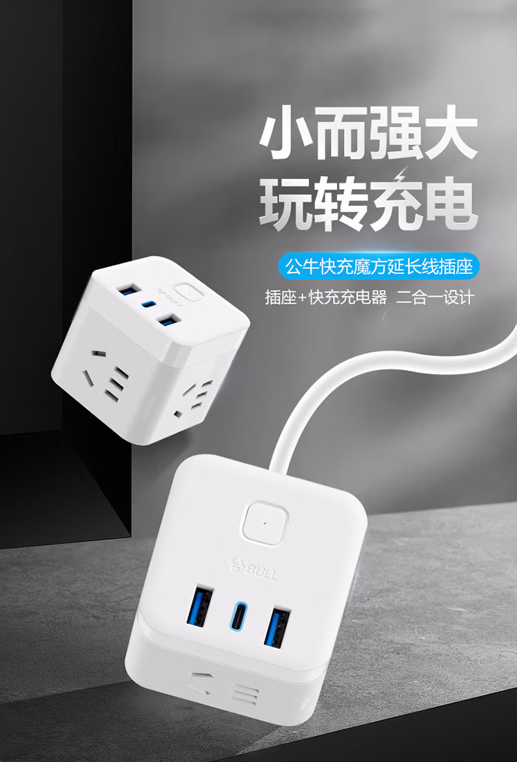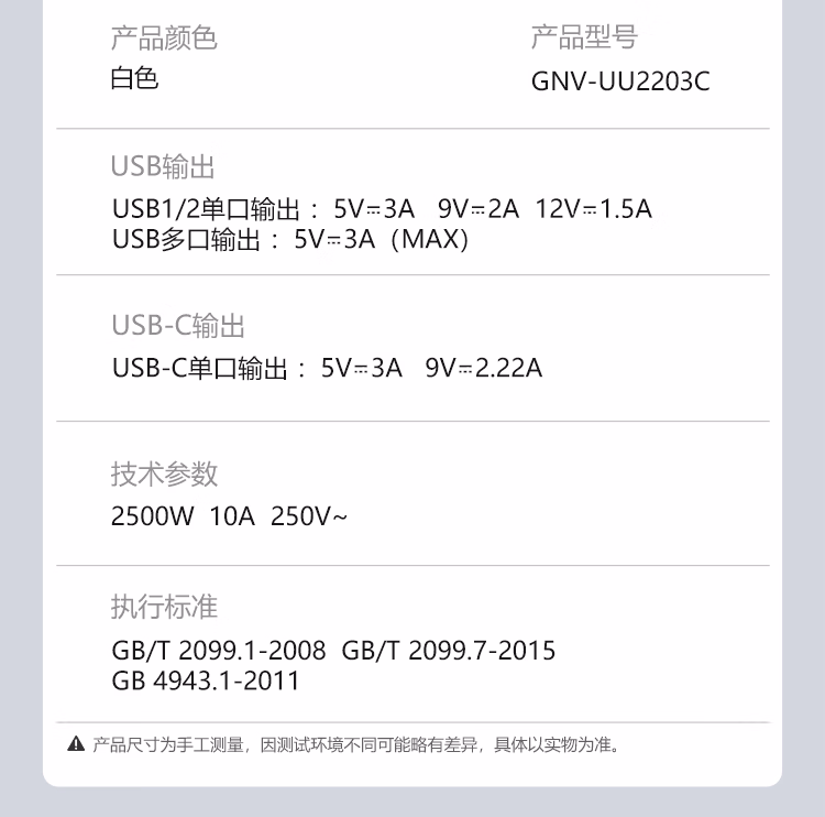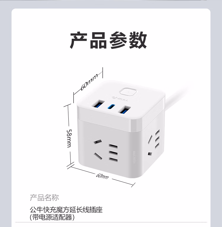 包装清单  :   20W PD苹果快充魔方插座/插线板/插排/接线板 Type-c+USB+3孔全长1.5米白色 GNV-UU2203C总控开关