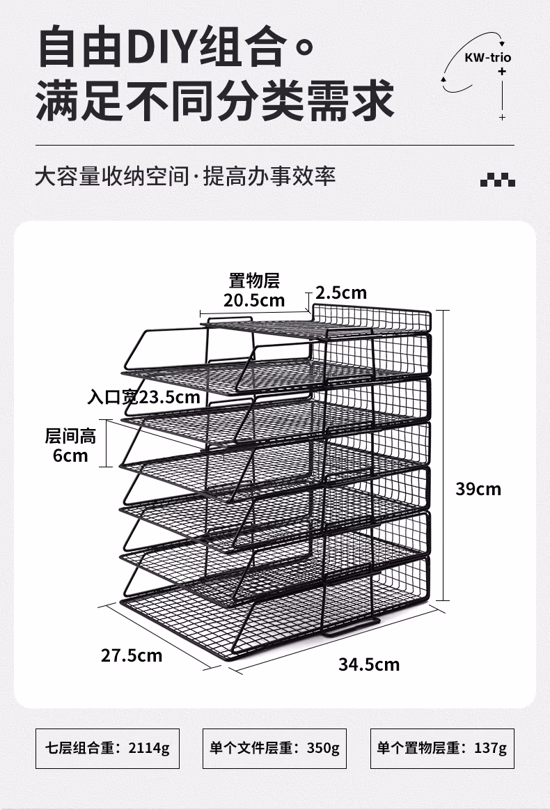 包装清单  :   竖式7层A4叠加网格文件架选择层数桌面铁网金属烤漆文件架子WL-26多层文件栏文件框文件盘资料架