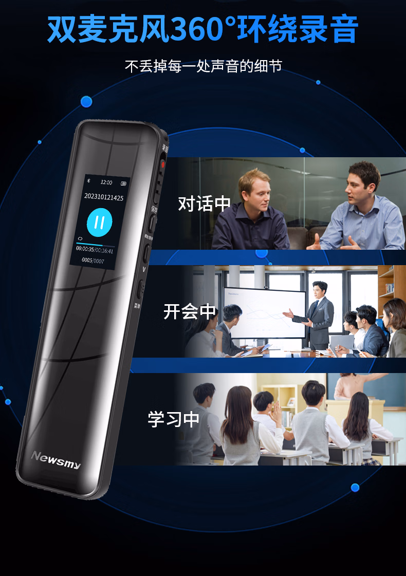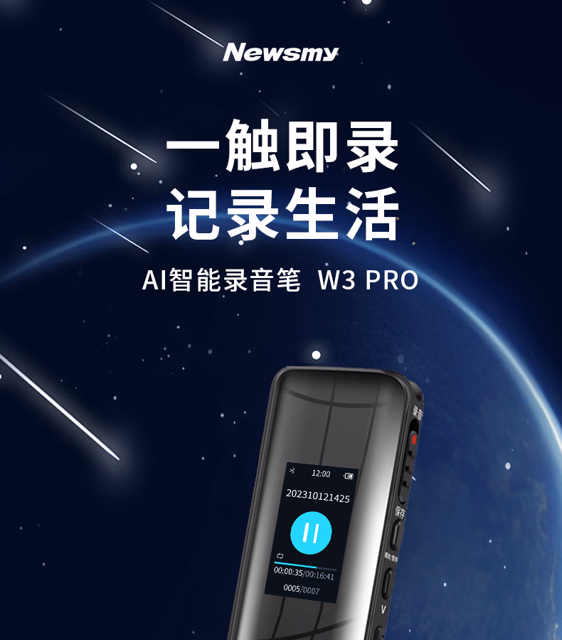 包装清单  :   纽曼智能Ai录音笔W3 Pro 32G免费AI大模型 思维导图会议总结同传翻译高清降噪 免费语音转文字录音神器