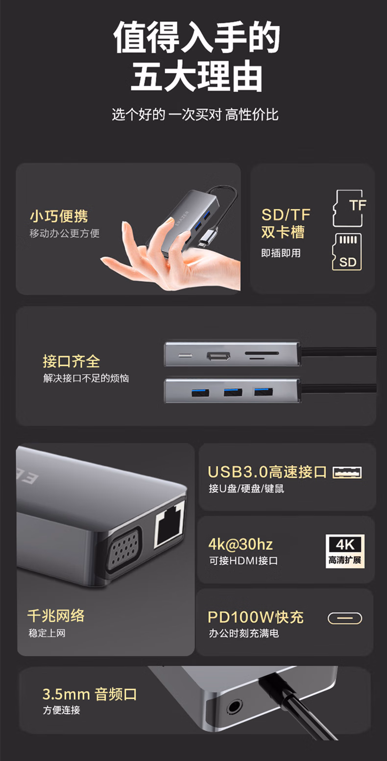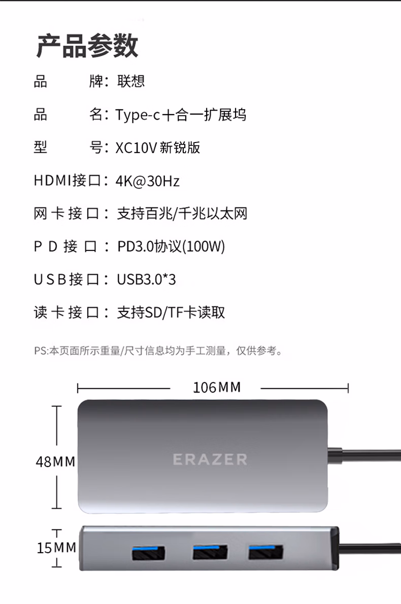 包装清单  :   联想(Lenovo)生态品牌异能者Type-C扩展坞适用苹果15Macbook/ipad电脑华为笔记本手机拓展坞HDMI网线转接头
