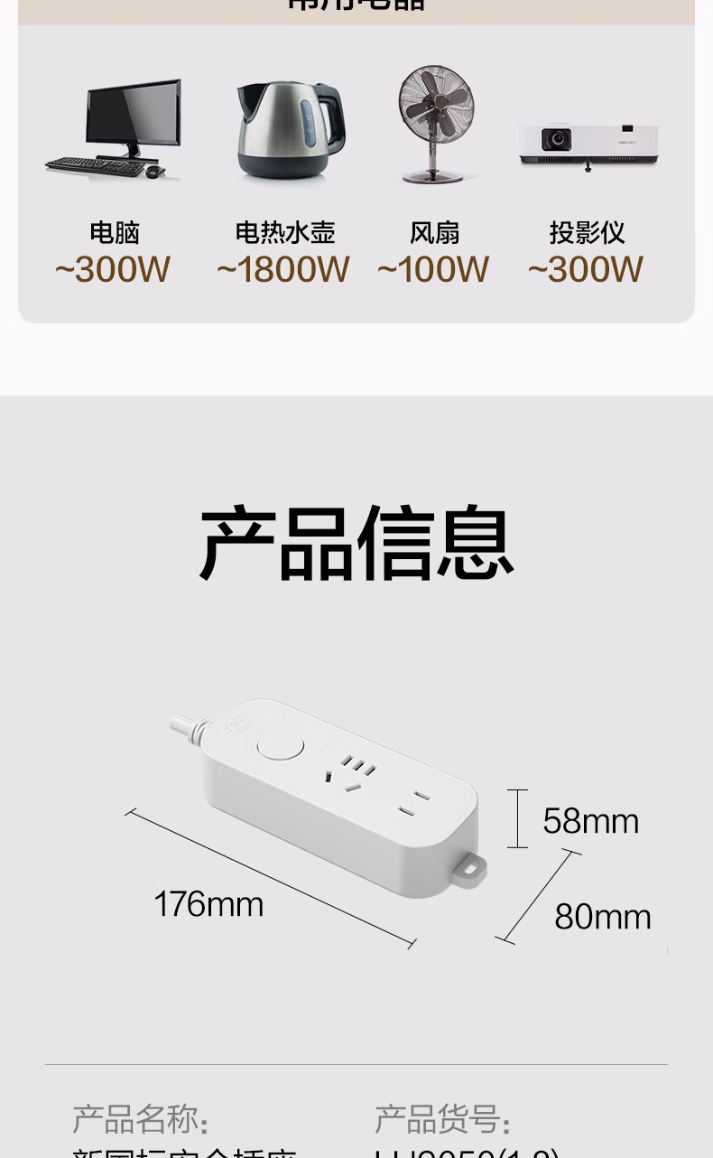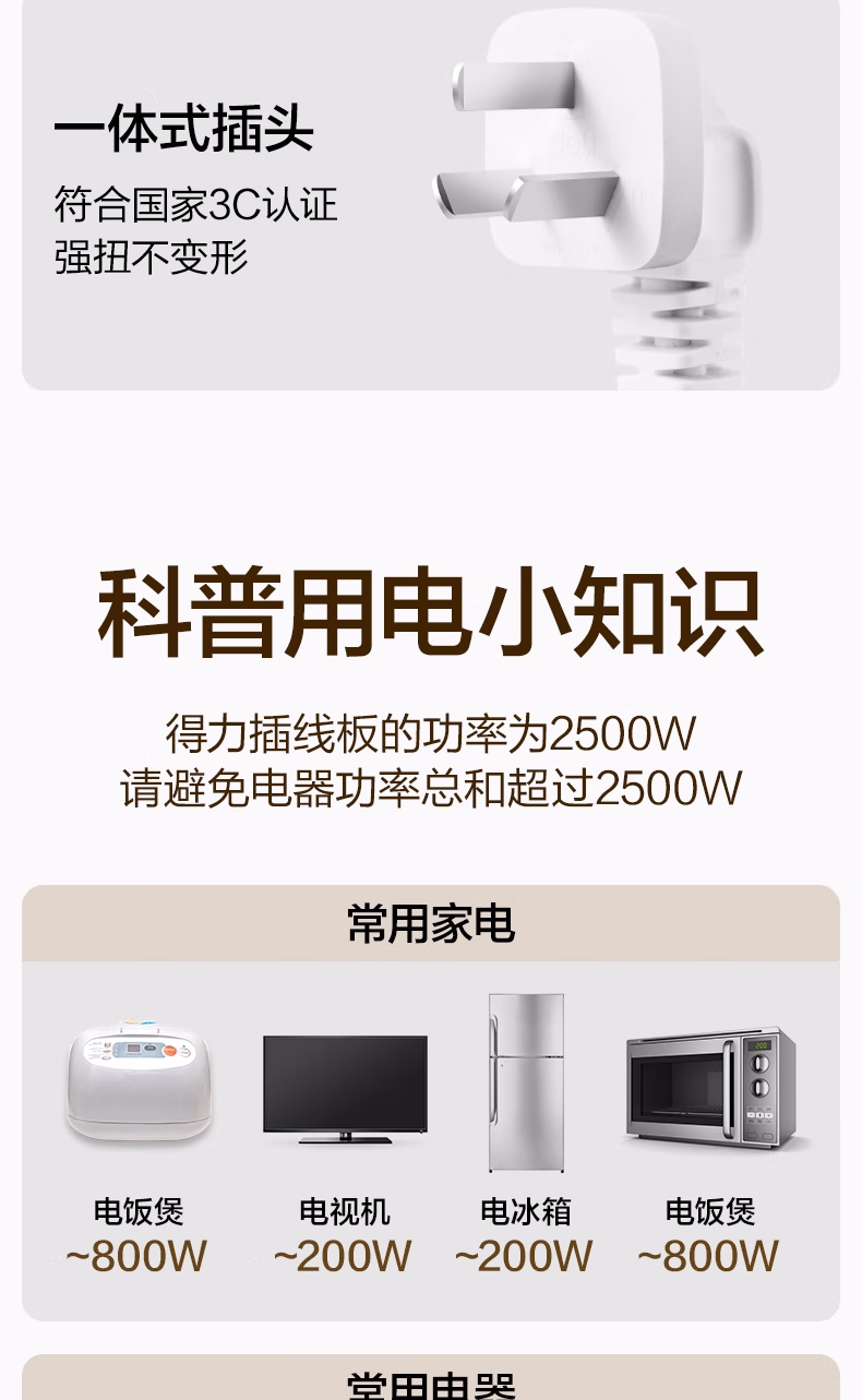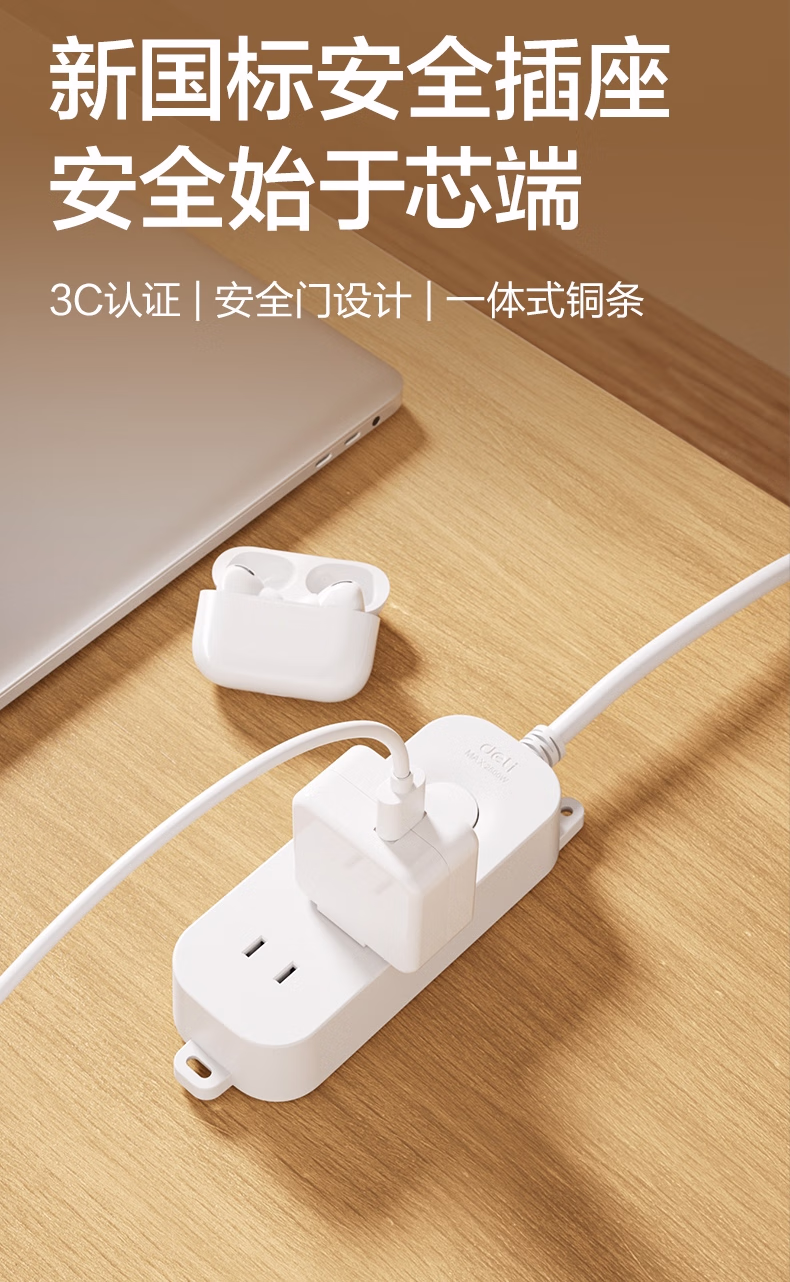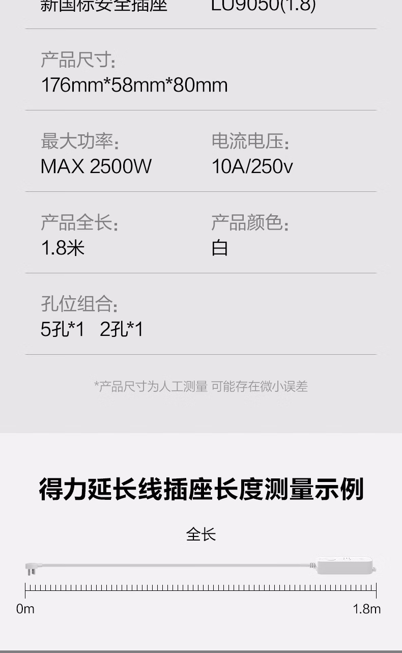 包装清单  :   得力(deli)3C认证安全插座 插线板/插排/排插/插板/接线板/拖线板延长线 总控开关 1+1孔1.8米 LU9050(1.8)