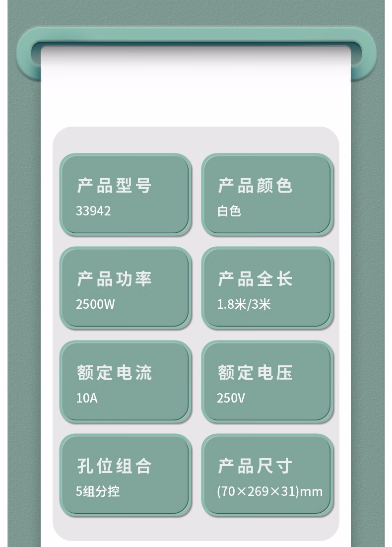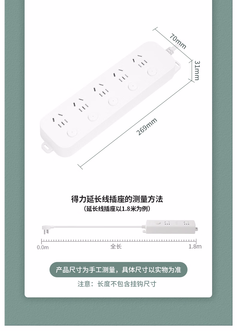 包装清单  :   得力(deli)雅白系列国标安全插座/插排/插线板/接线板/排插/拖线板延长线 分控 5位3米 33942(03)