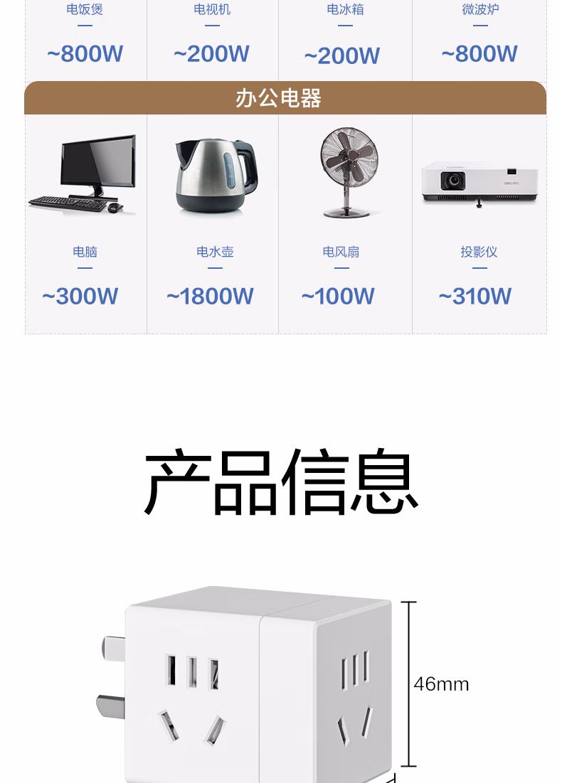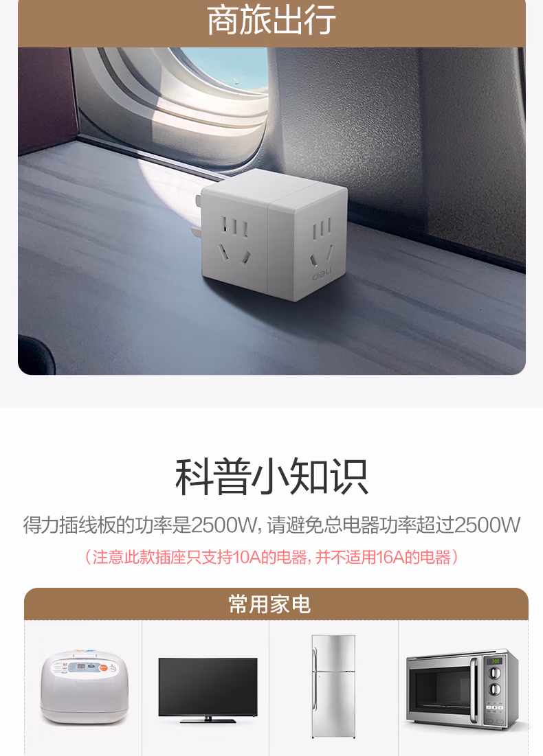 包装清单  :   得力(deli)旅行转换插头 1转3电源转换器/转换插头/魔方插座/魔方转换器/无线插座 3孔 无线魔方 33634白色