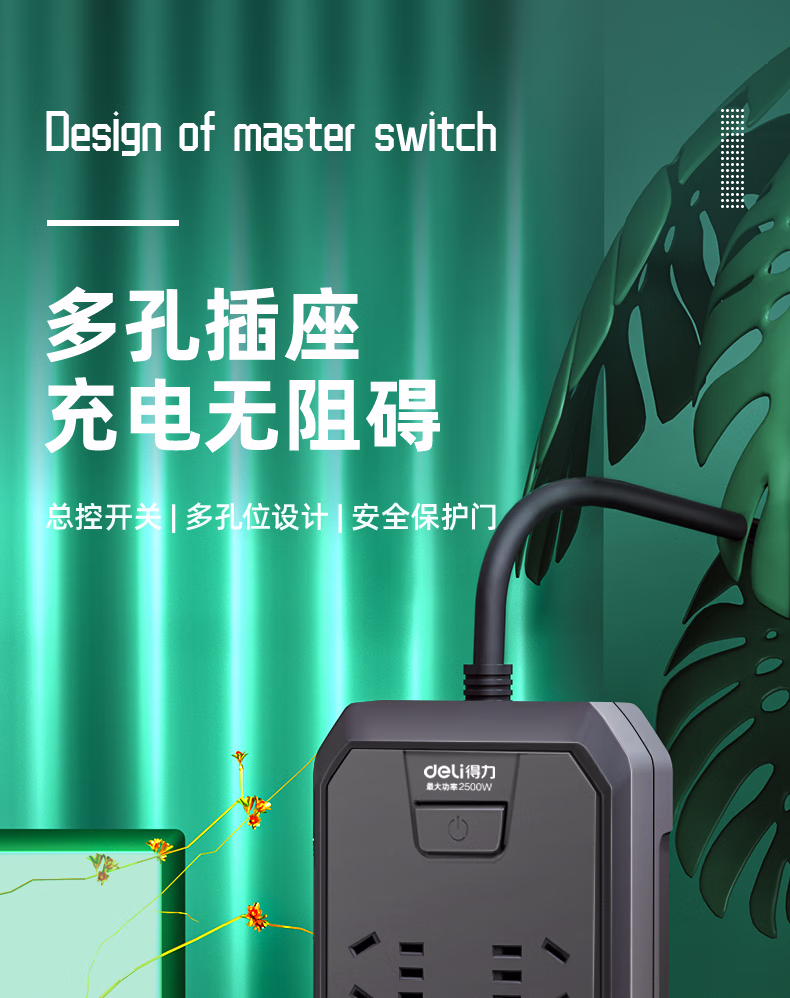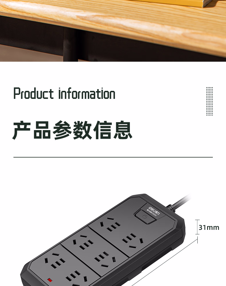 包装清单  :   得力(deli)3C认证国标安全插座 插排/插线板/接线板/排插/拖线板 6位3米 总控开关 黑色 18335(03)