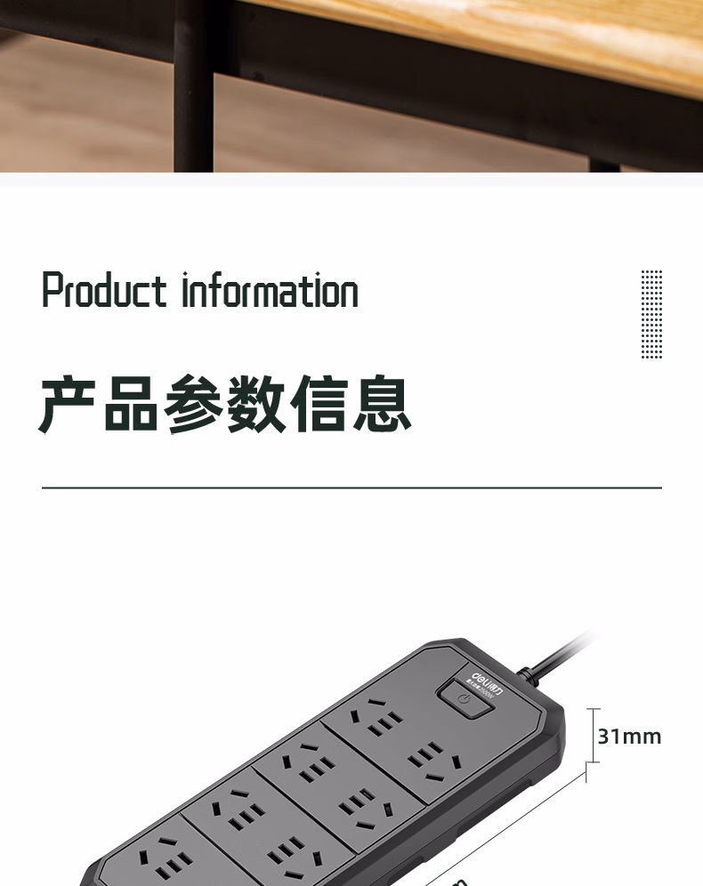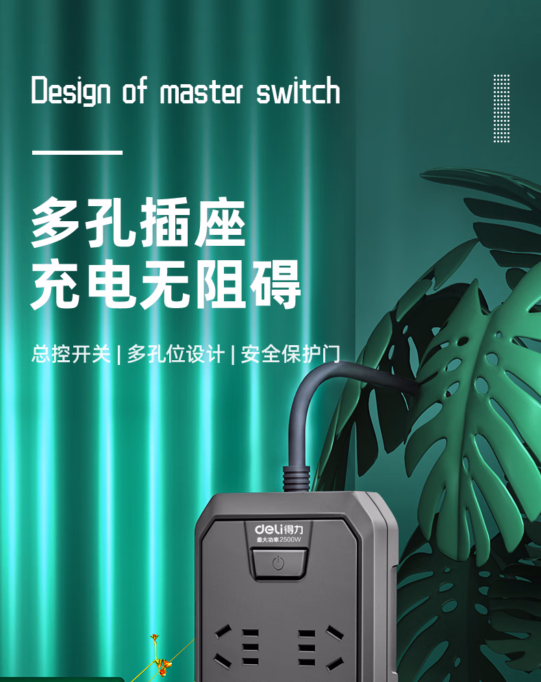 包装清单  :   得力(deli)3C认证国标安全插座/插排/插线板/接线板/排插/拖线板 8位5米 总控开关 黑色 18336(05)