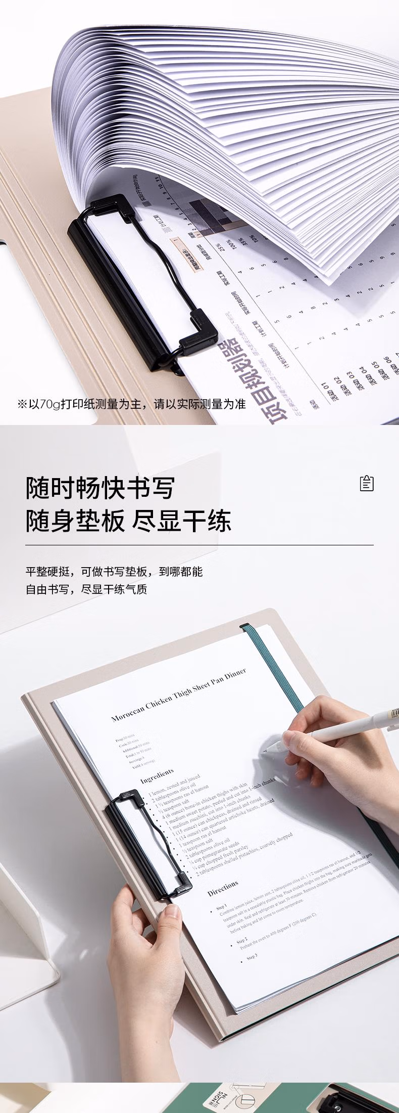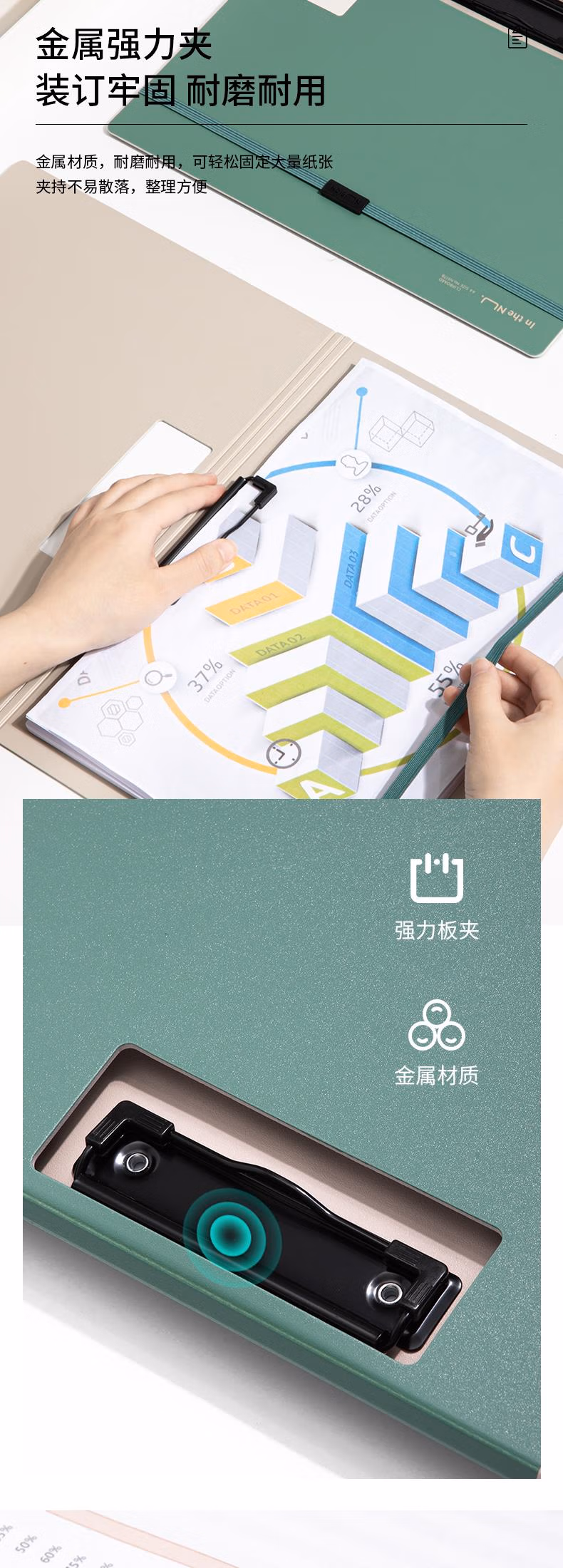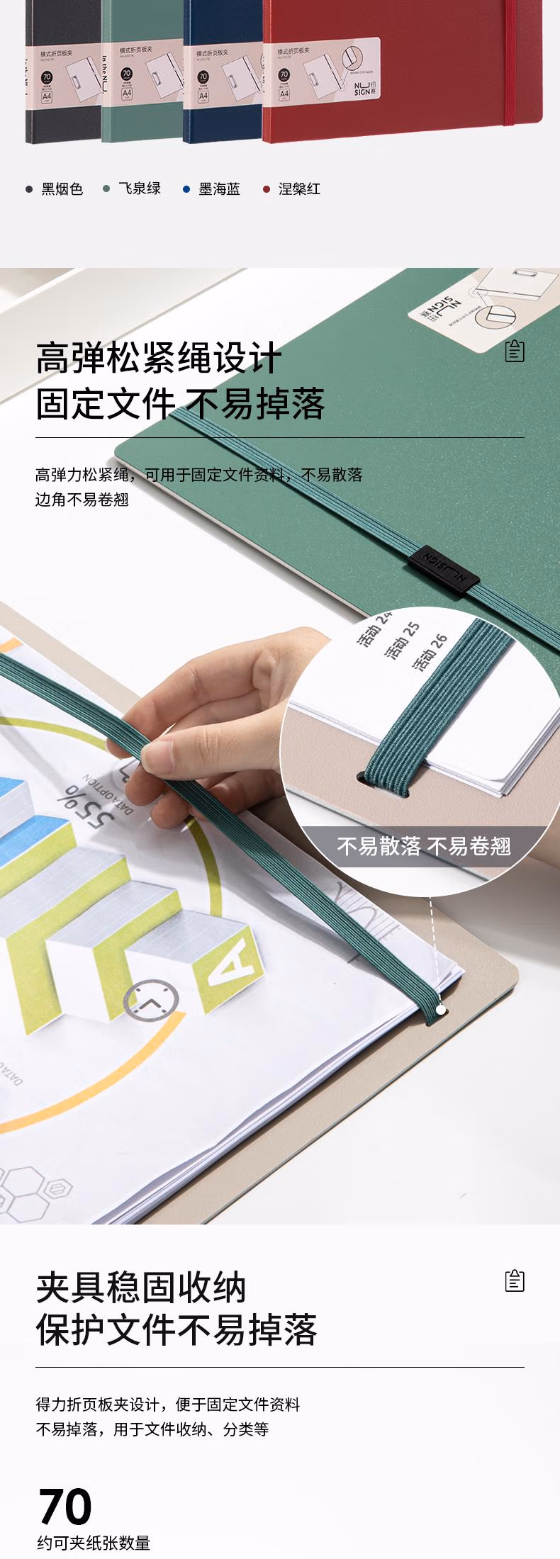 包装清单  :   得力(deli)纽赛(NUSIGN)A4横式折页板夹会议夹 加厚文件夹彩色资料夹资料收纳合同签约办公用品 复古绿NS178