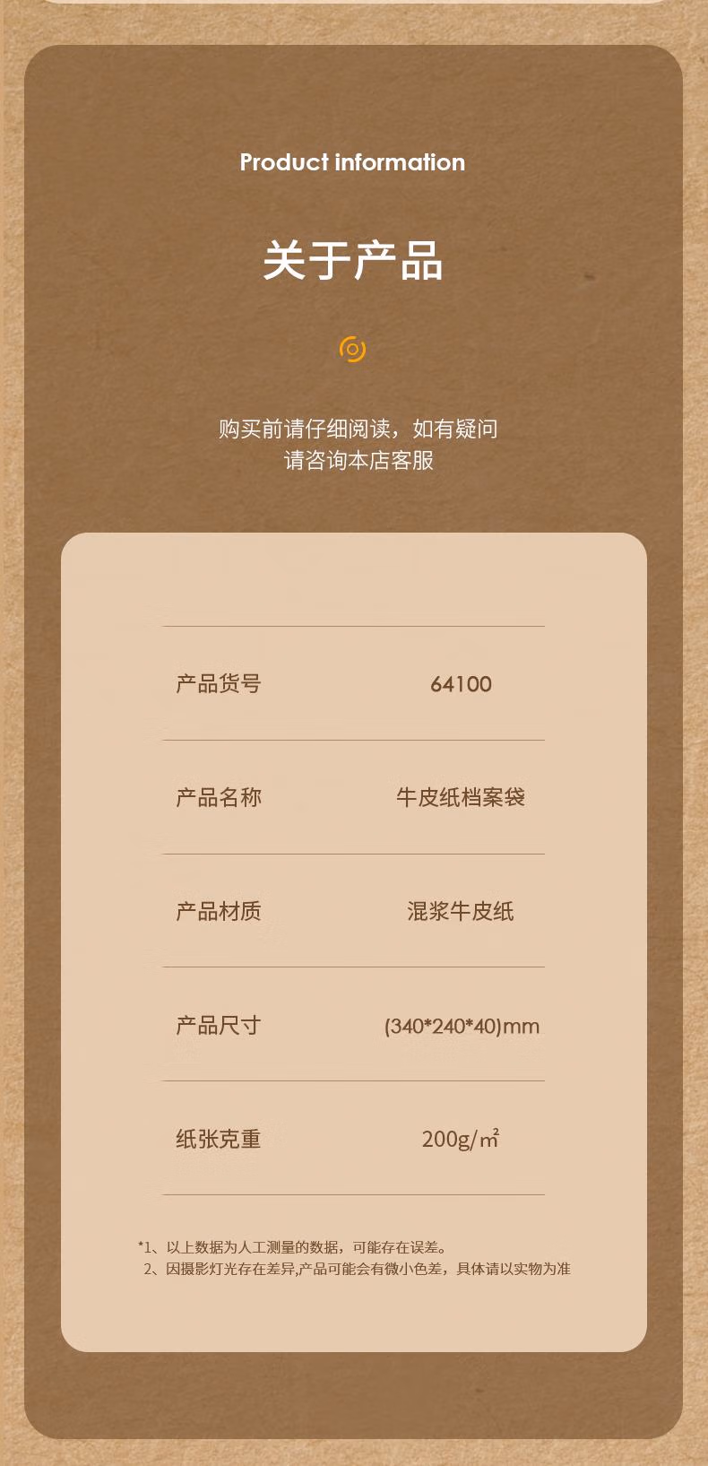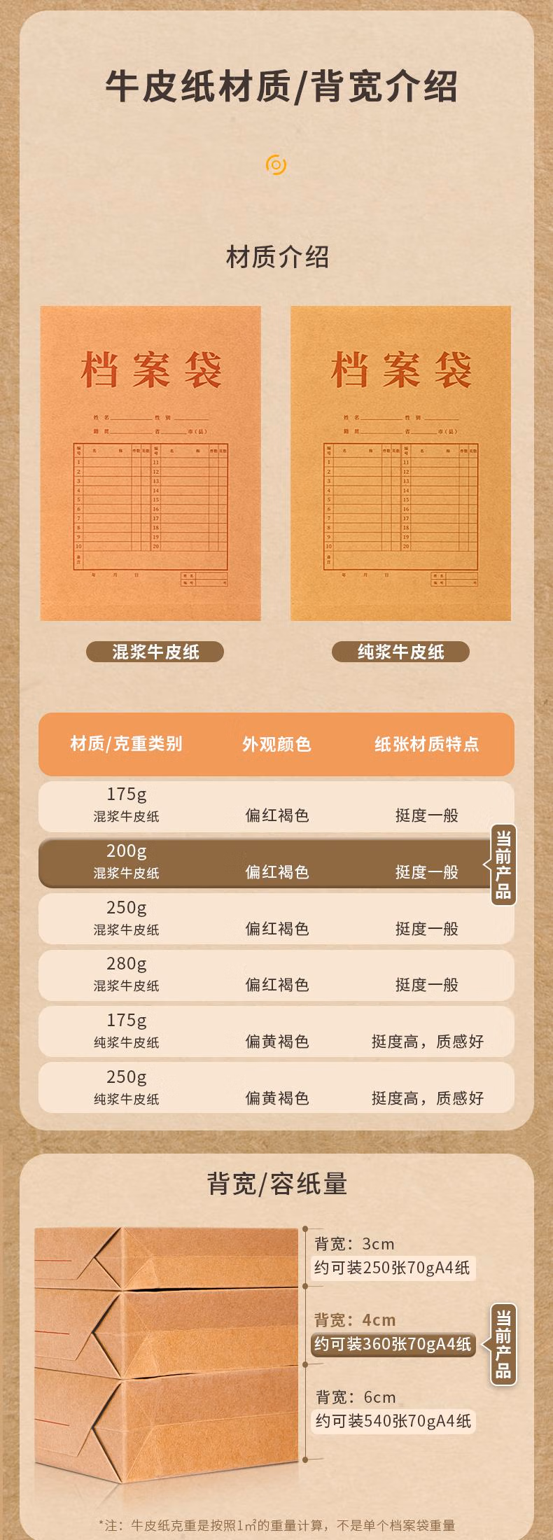 产品材质  :   A4混浆200g加厚牛皮纸