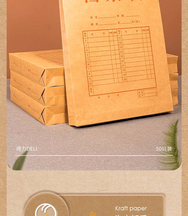 包装清单  :   得力(deli)50只A4纯浆175g侧宽4cm牛皮纸档案袋 财务票据收纳袋标书 办公合同文件资料袋 (黄)5952-50