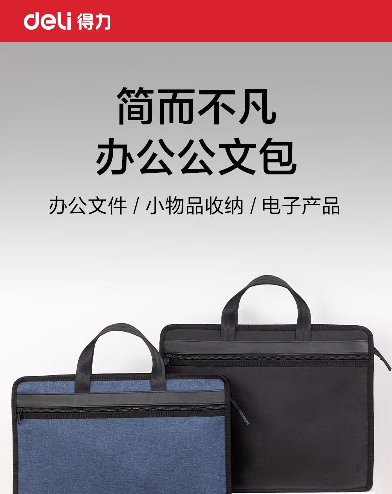 包装清单  :   得力(deli)男士女士便携商务公文包 立体式结构手提包拉链袋 耐磨防刮文件袋 黑色BG210