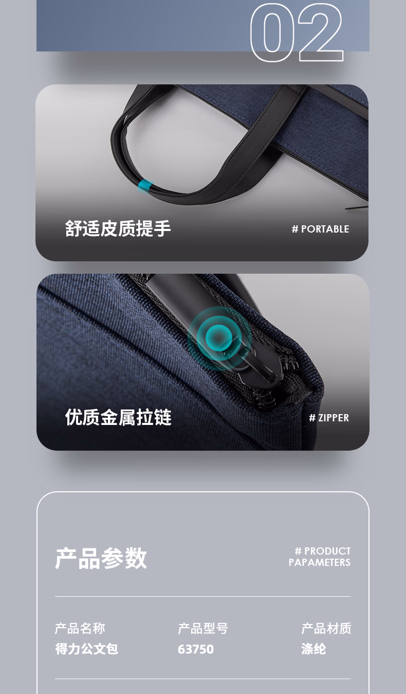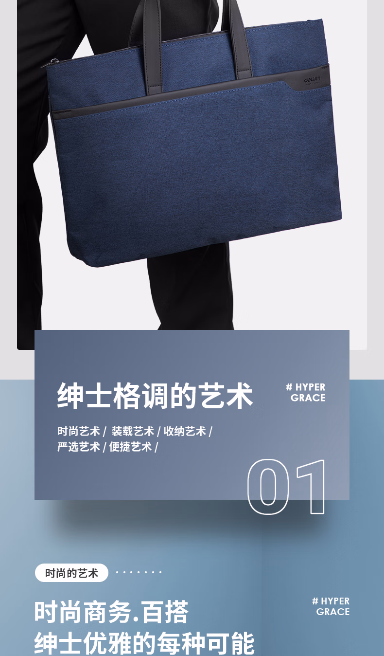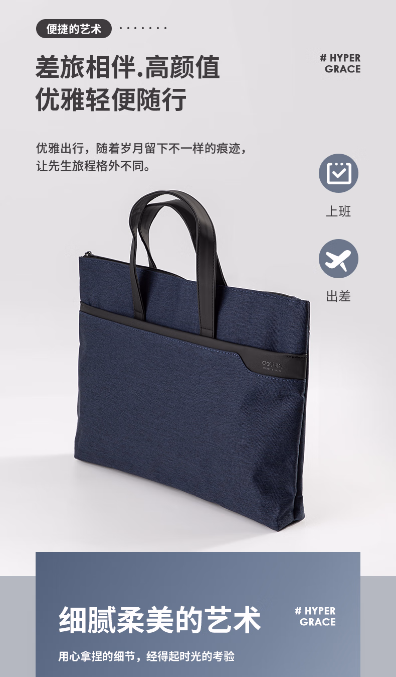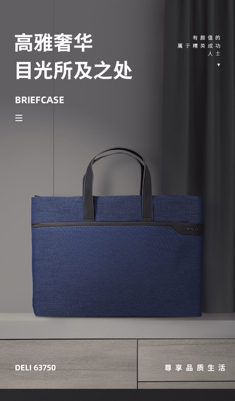 包装清单  :   得力(deli)手提袋/会议包/事务包 商务便携拉链袋公文包 时尚简约 蓝