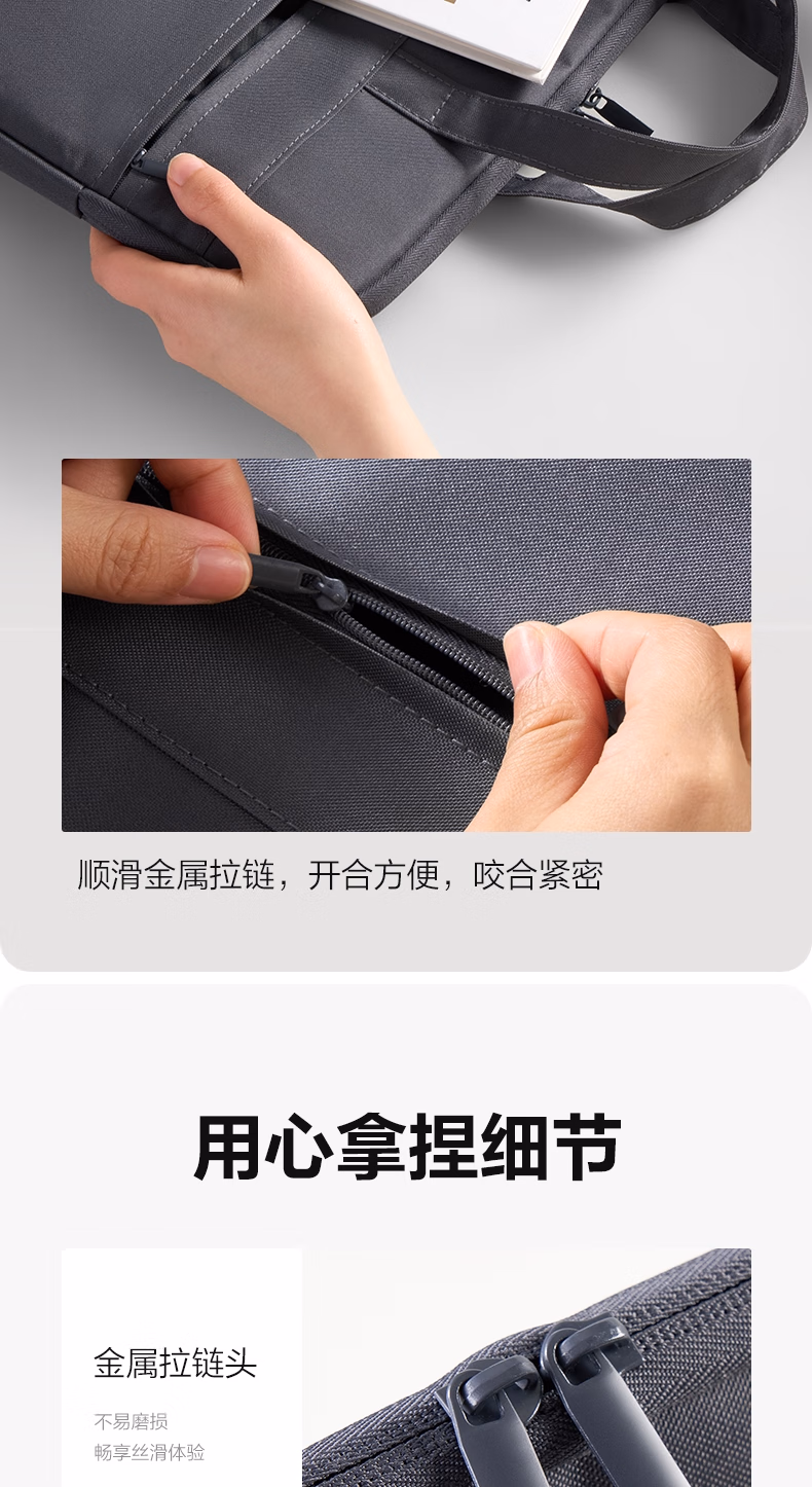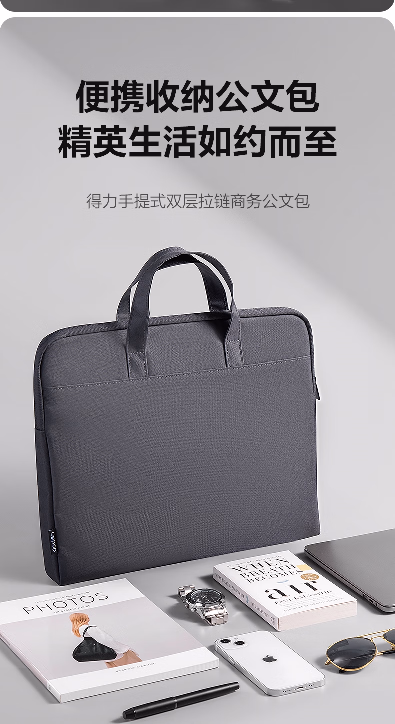 包装清单  :   得力(deli)加厚立体办公手提袋会议包事务包商务拉链袋电脑公文包便携手提袋生日礼物 灰色新老款随机