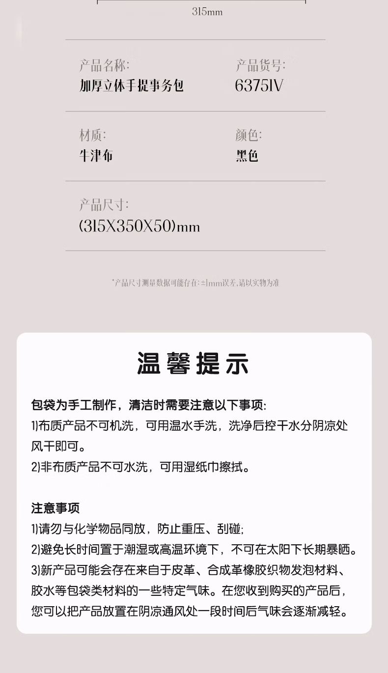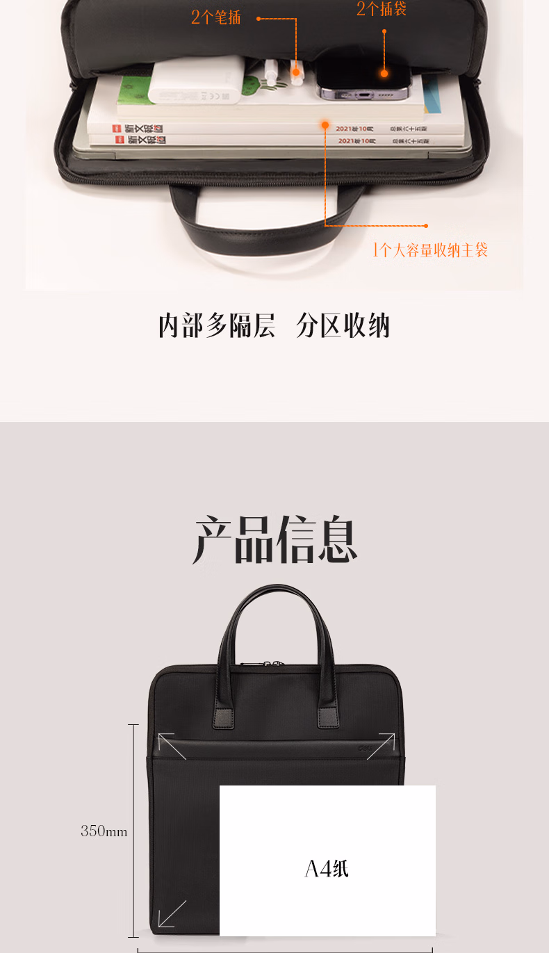 包装清单  :   得力(deli)(deli)加厚竖式立体办公手提袋/会议包/事务包/文件包/便携商务拉链袋电脑公文包男 黑色