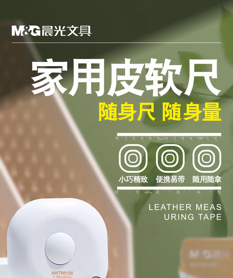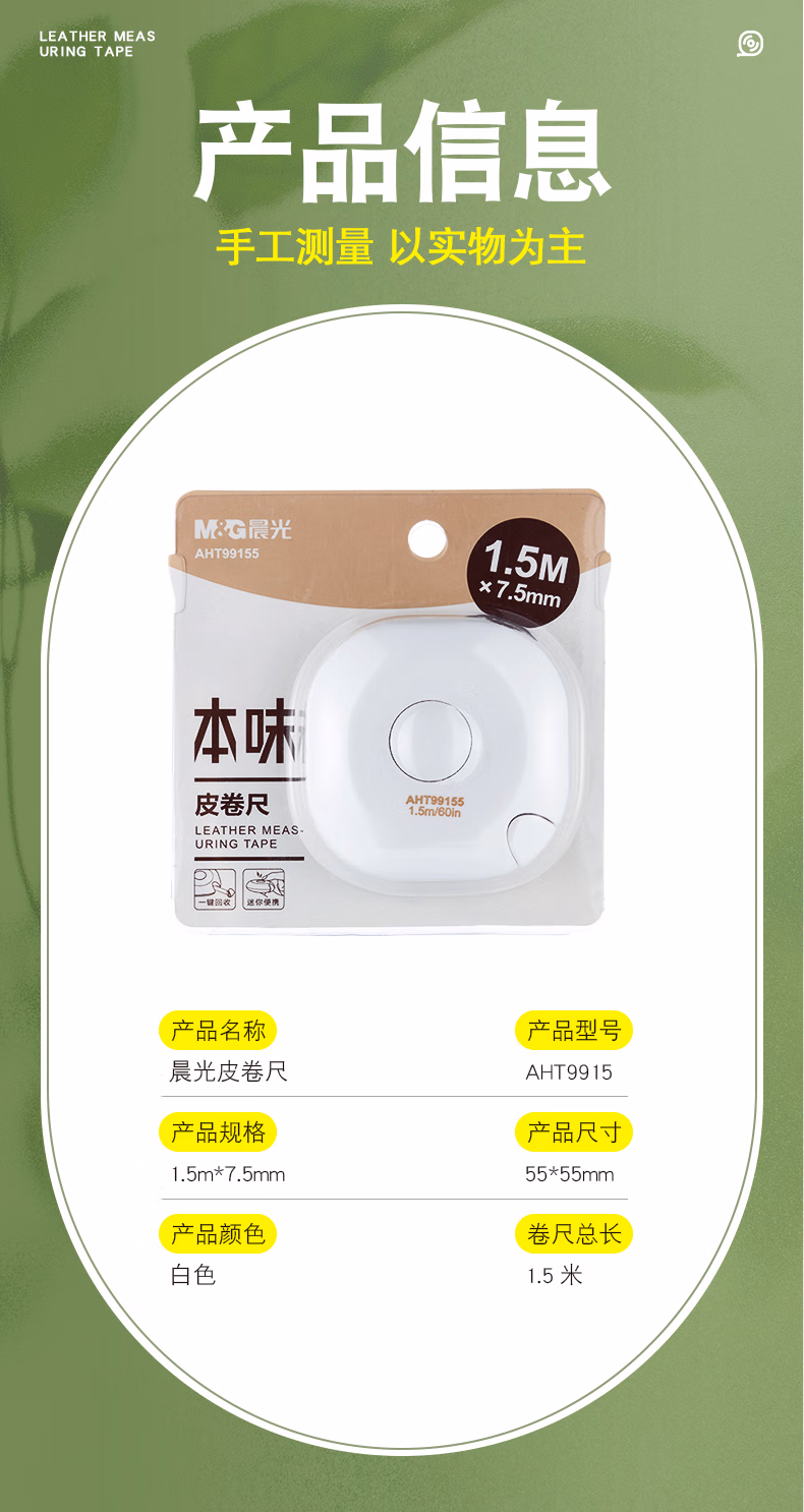 包装清单  :   晨光(M&G)文具本味1.5m皮卷尺公英双制学生办公家用测量迷你软尺子量腰围身材管理专用 AHT99155