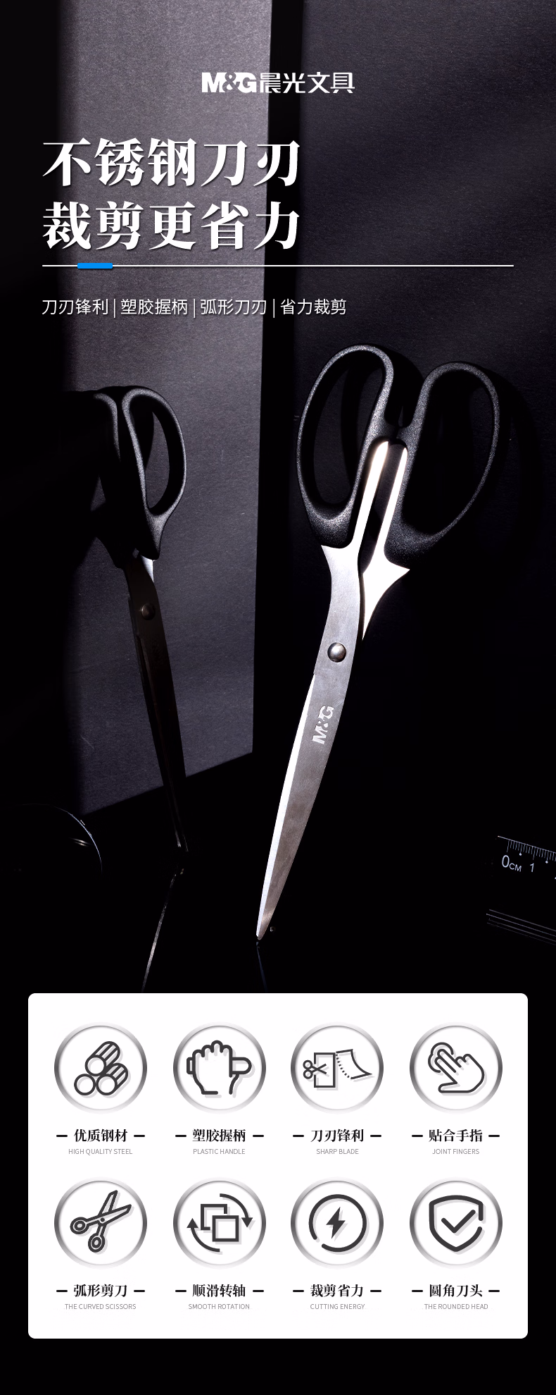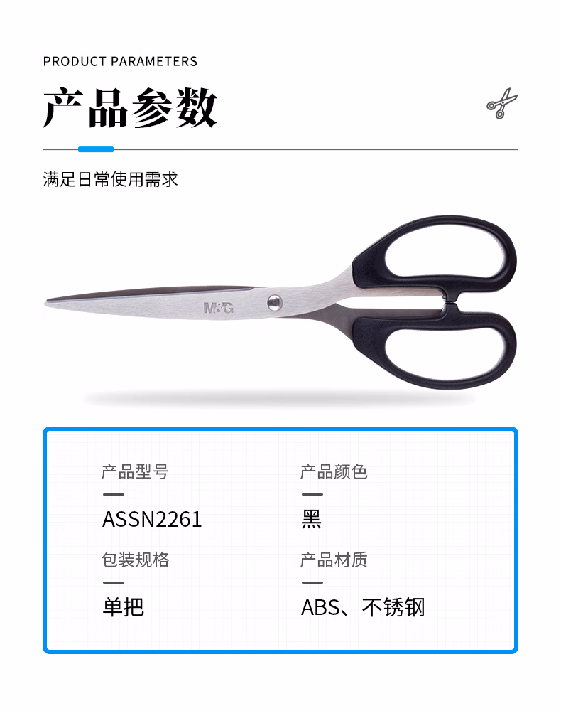 包装清单  :   晨光(M&G)文具热门商品210mm办公家用生活剪刀 大号手工剪纸刀 办公用品 黑色单把装ASSN2261