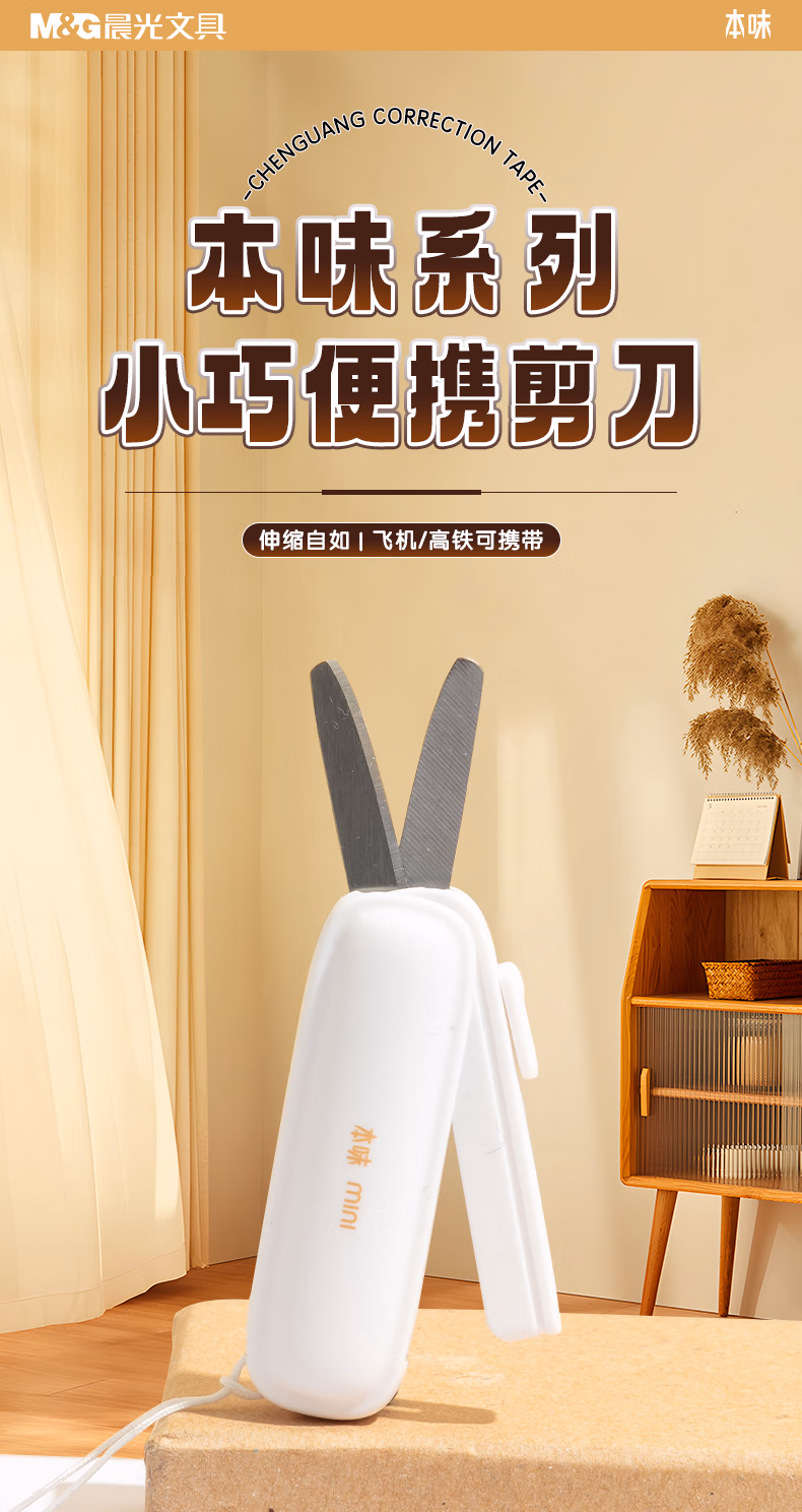 包装清单  :   晨光(M&G)文具热门商品 本味迷你随身便携剪刀 飞机高铁可携 侧边收纳小剪刀 办公文具 白色 ASS913W9