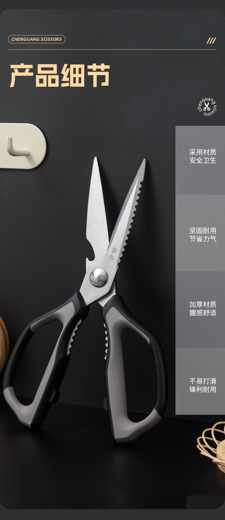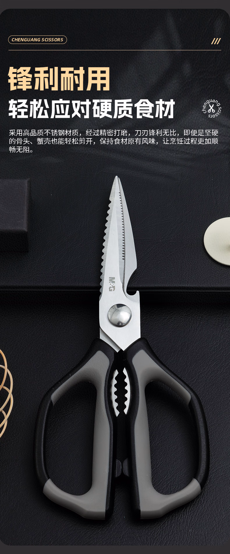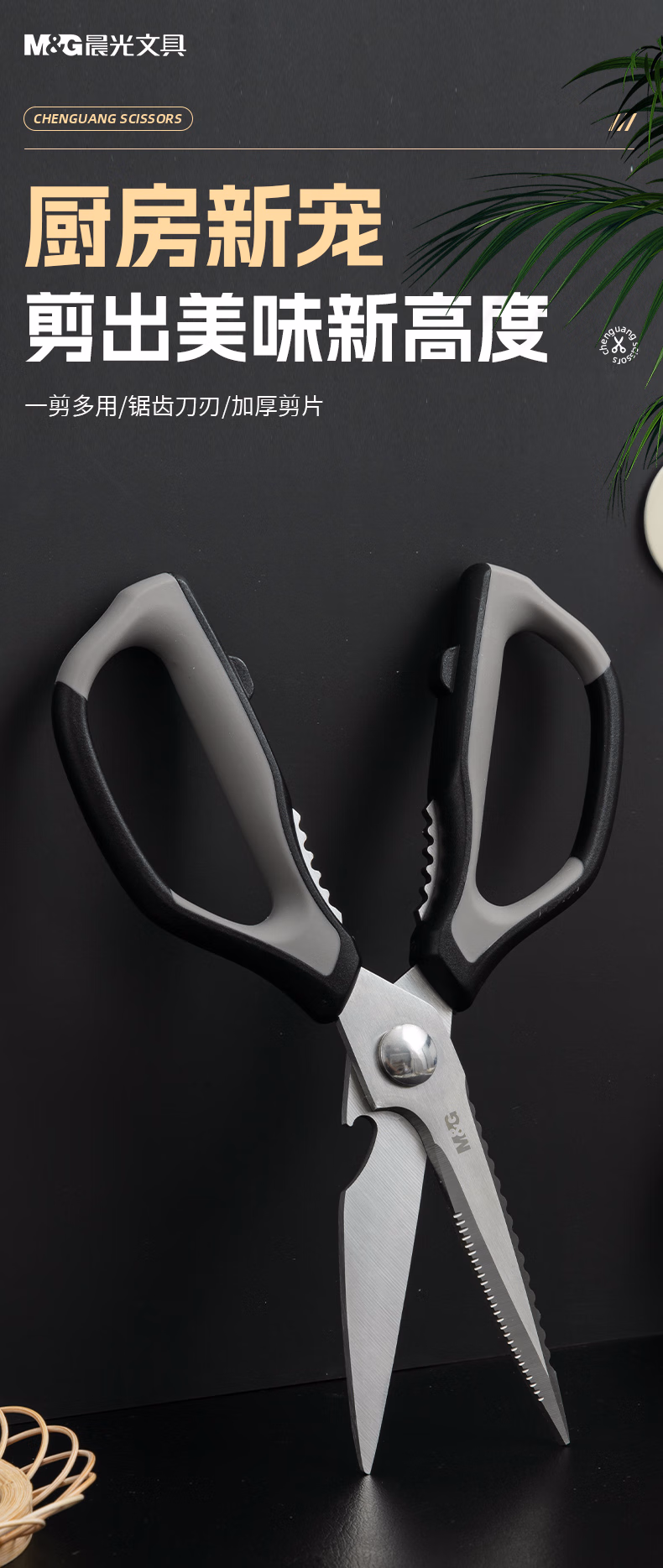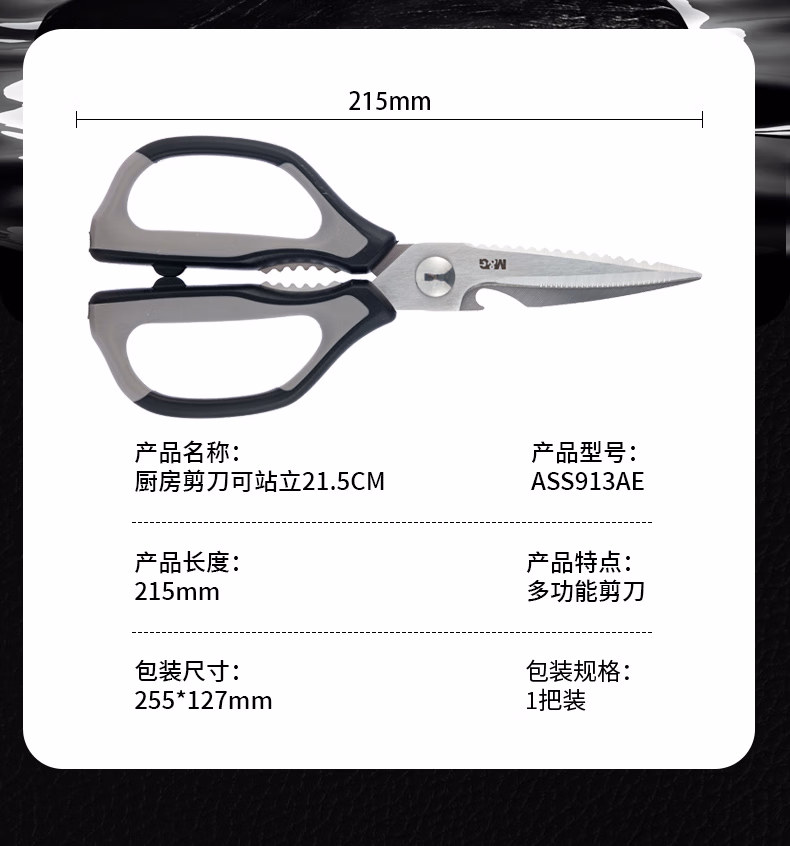 包装清单  :   晨光(M&G)文具 不锈钢多功能厨房剪刀家用剪子 食品级厨房可拆卸剪刀 多功能辅食剪鸡骨剪 ASS913AE