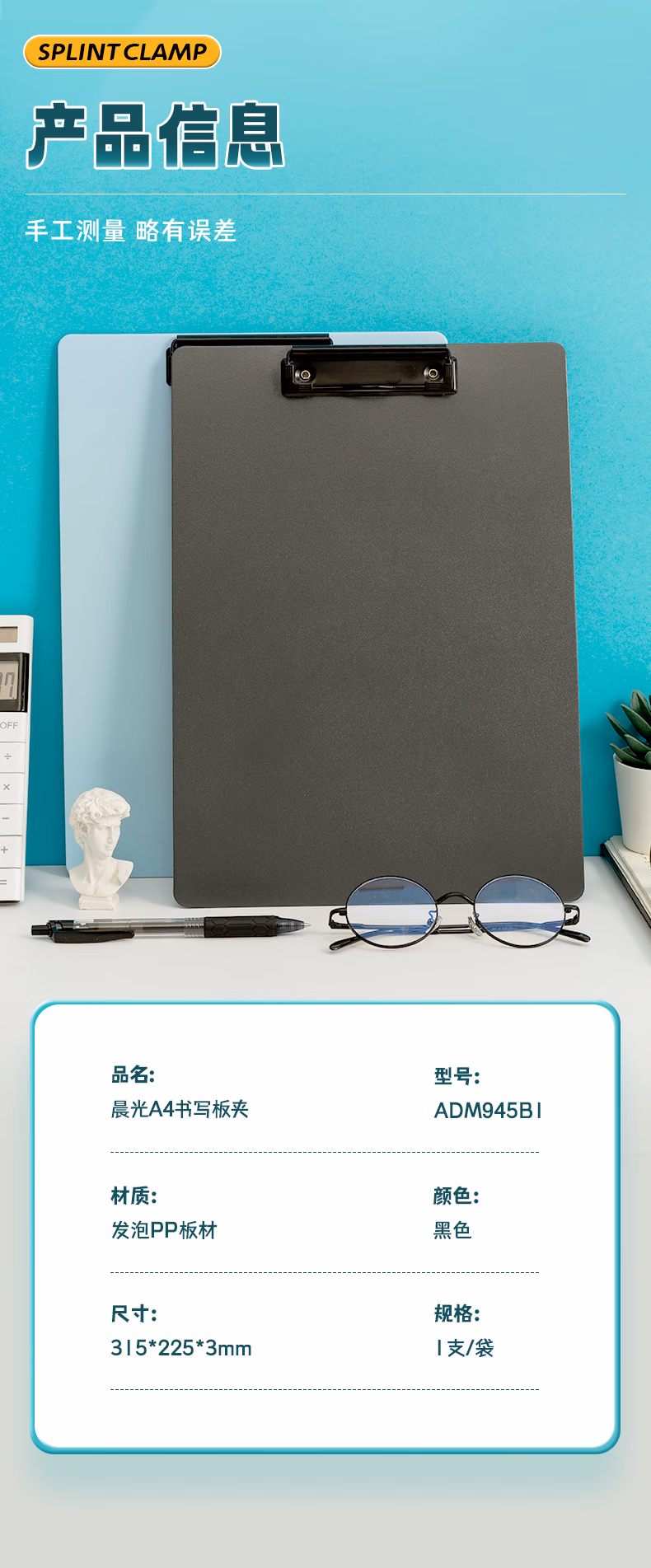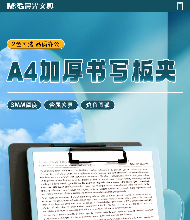 包装清单  :   晨光(M&G)文具 文件夹夹板写字板 a4板夹加厚会议垫板试卷夹菜单夹 办公用品ADM945B1黑