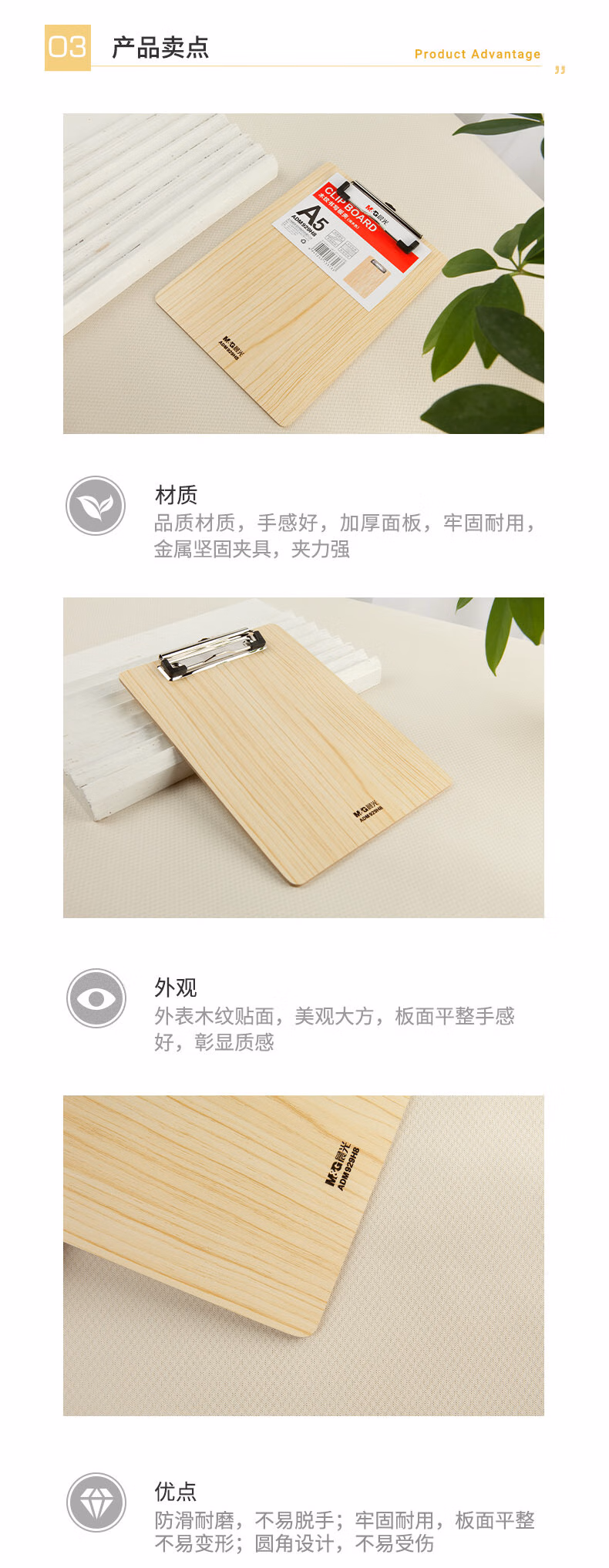 包装清单  :   晨光(M&G)文具A5浅色木纹书写板夹 加厚记事夹文件夹垫板 单个装ADM929H8