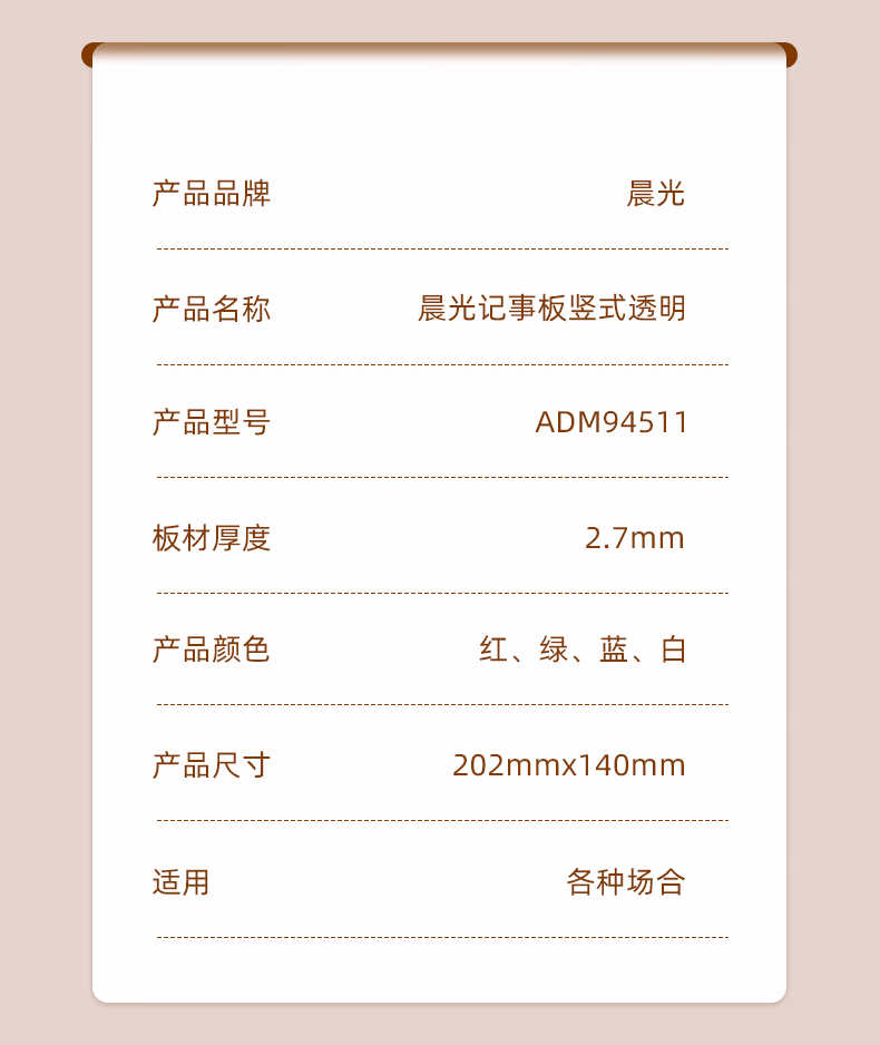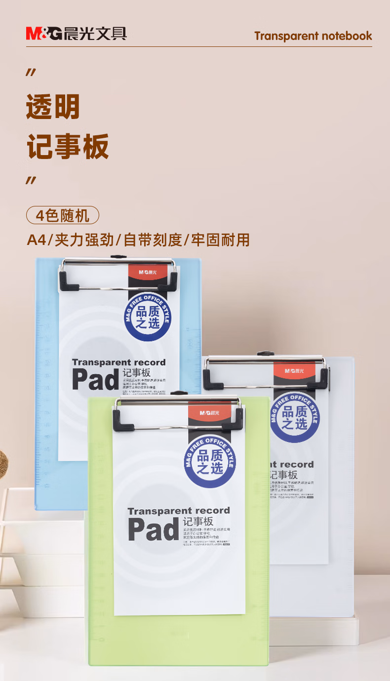 包装清单  :   晨光(M&G)A5竖款文件板竖式记事板夹垫板文件夹单个装透明 颜色随机 办公文具 ADM94511