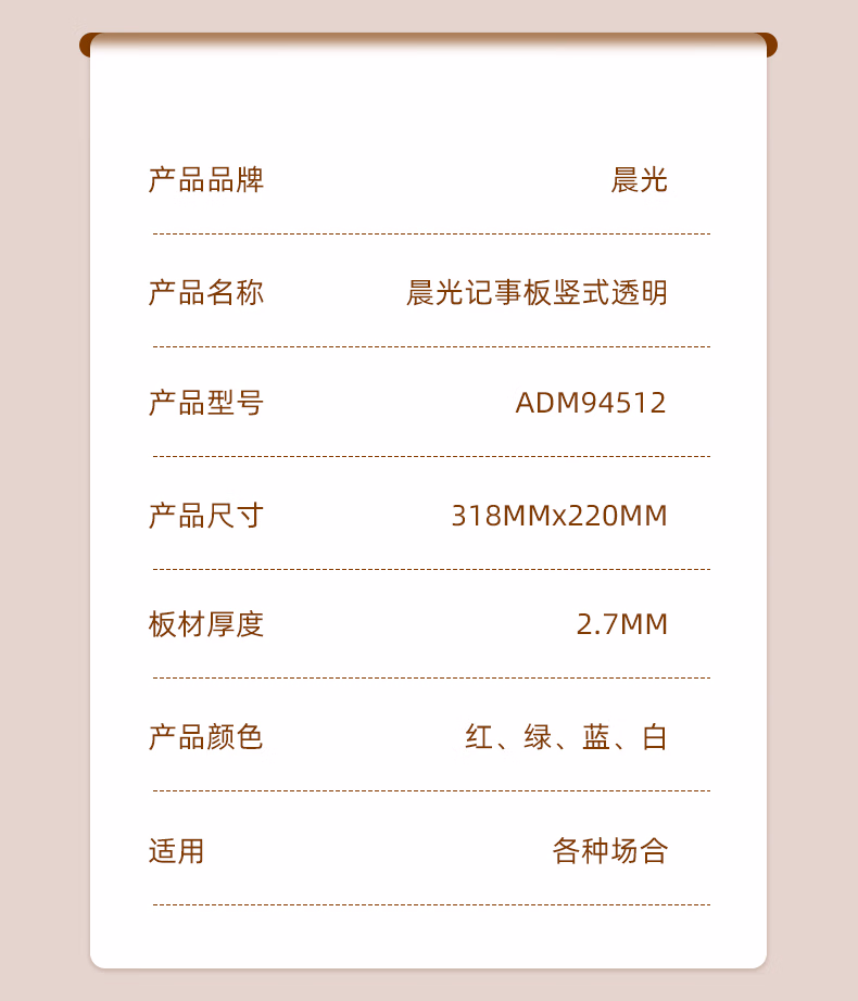 包装清单  :   晨光(M&G)文具A4板夹竖式 学生试卷书写板 诗朗诵签约板夹文件夹 单个装颜色随机ADM94512