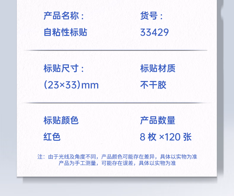 包装清单  :   得力(deli)960枚23mm×33mm标签便利贴贴纸自粘性标贴 33429