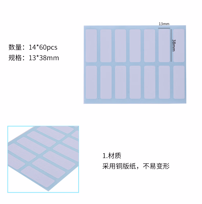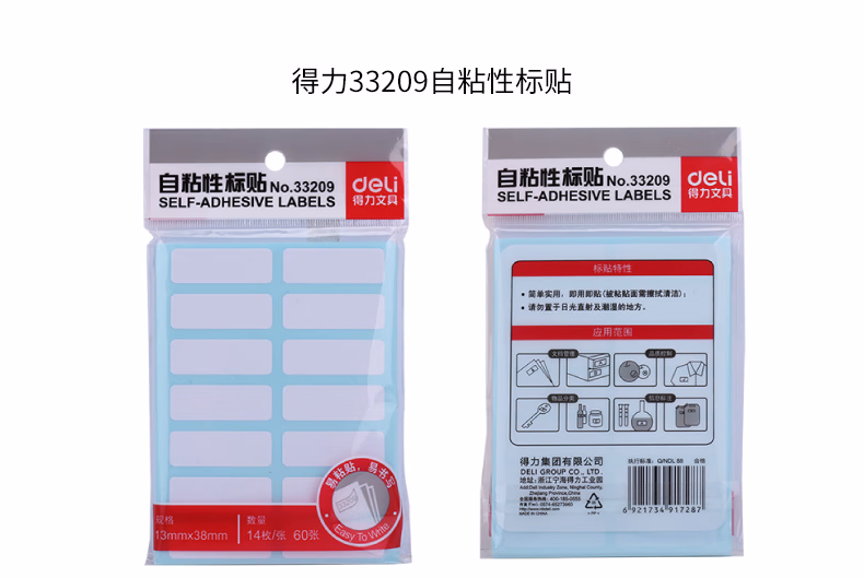 包装清单  :   得力(deli)840枚13×38mm不干胶标签便利贴贴纸自粘性标贴 14枚/张33209
