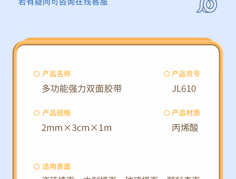 包装清单  :   得力(deli)纳米双面胶3.0升级 30mm*1m 强力高粘墙面贴无痕胶 网格透明防水纳米胶带 春联专用 1卷 JL610