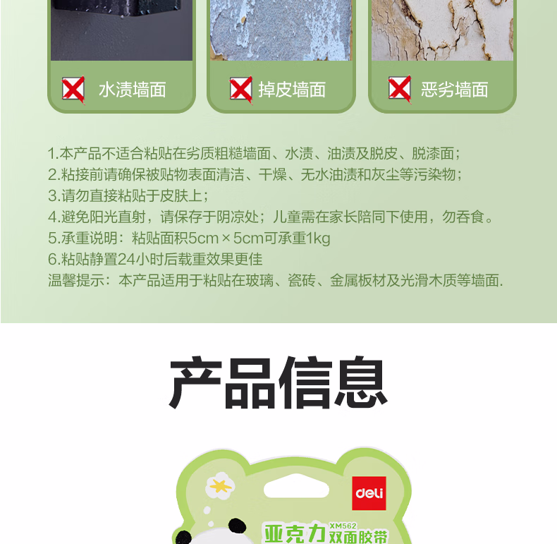 包装清单  :   得力(deli)亚克力纳米无痕双面胶 强力高粘防水不留痕车用透明网格胶带水洗可重复使用 12mm*1m XM562