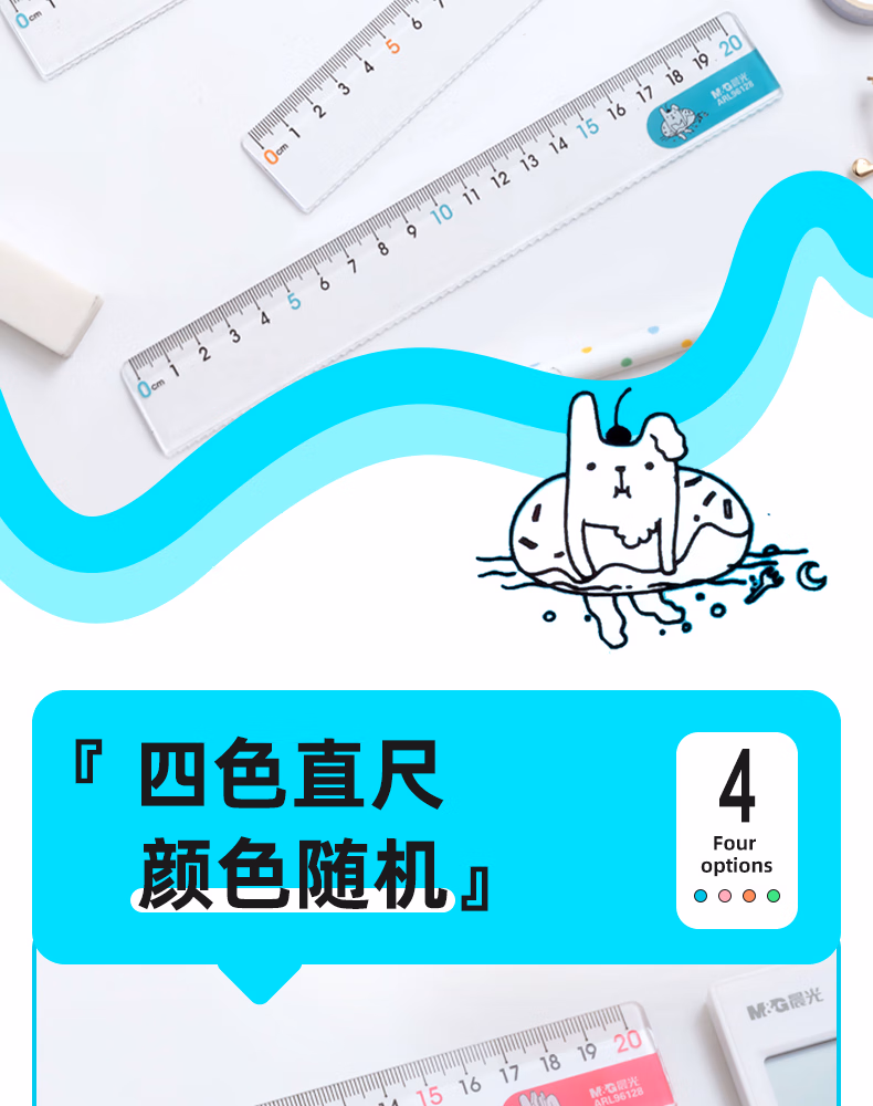 包装清单  :   晨光(M&G)文具耷拉兔波浪边尺子小学生直尺20cm文具考试专用 颜色随机单个装ARL96128中考高考