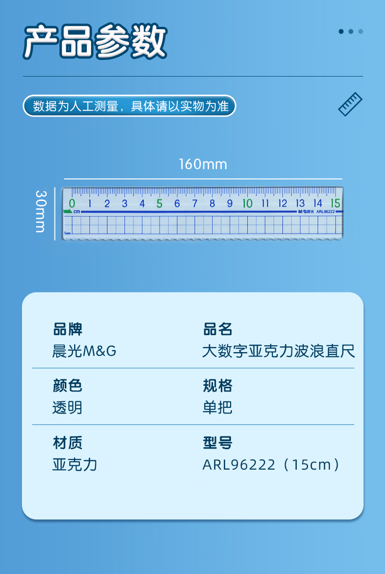 包装清单  :   晨光(M&G)文具高透大数字亚克力波浪尺子小学生直尺18cm文具考试专用 ARL96124中考高考
