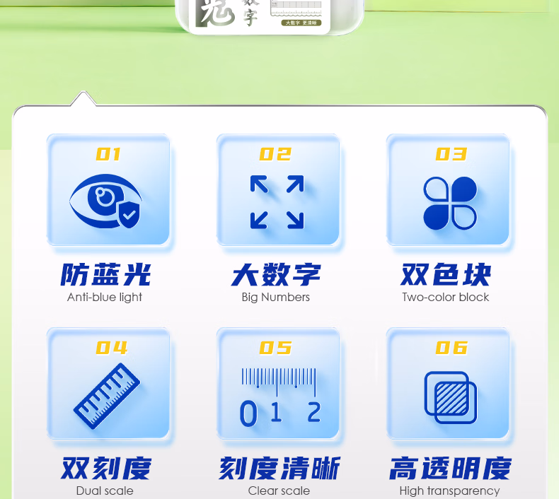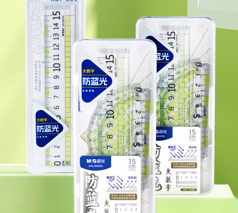 包装清单  :   晨光(M&G)文具防蓝光护眼尺子小学生直尺15cm文具考试专用大数字零起端 ARL960GM