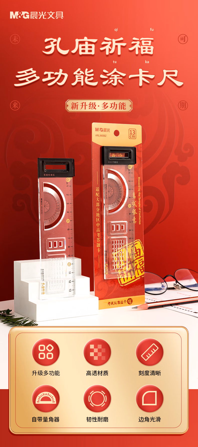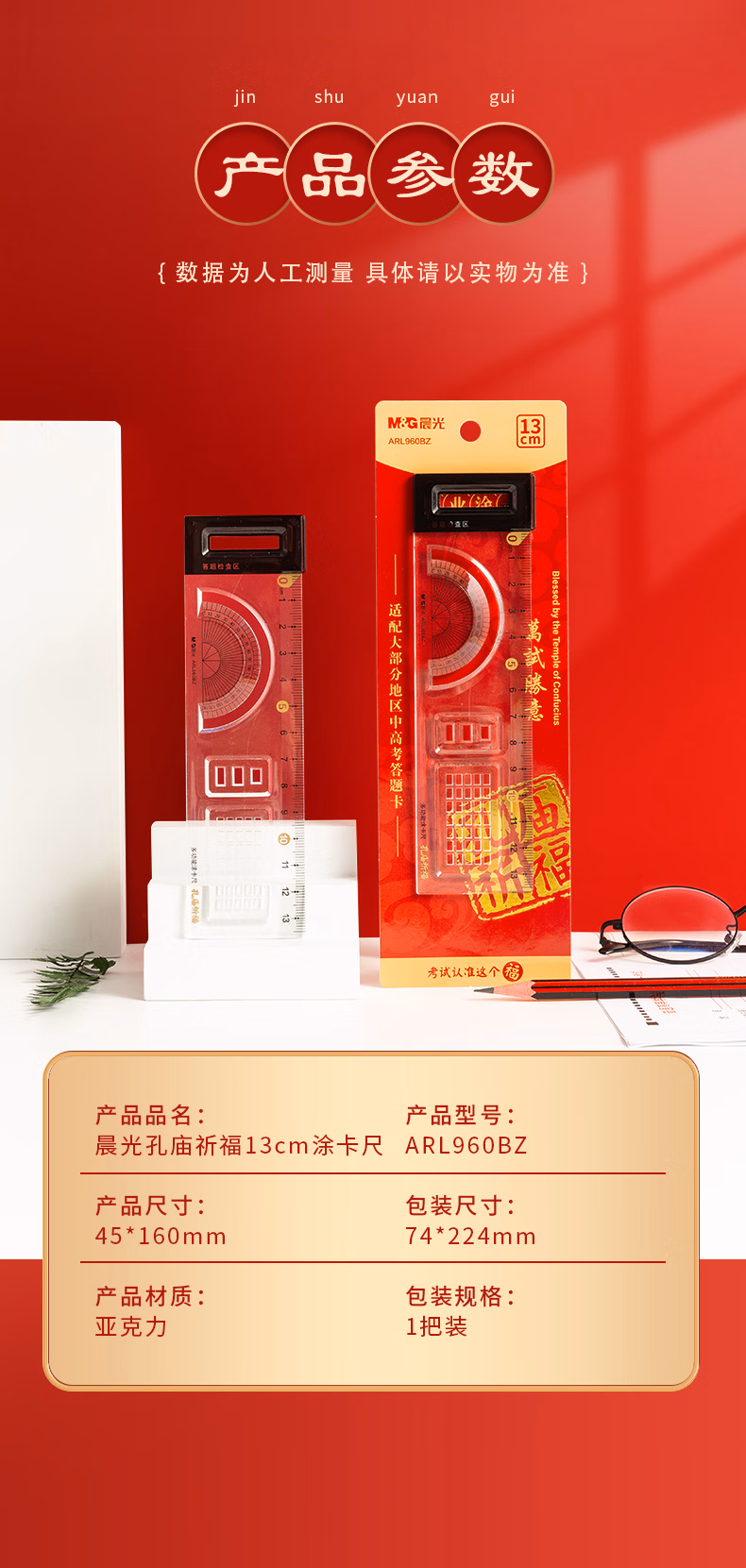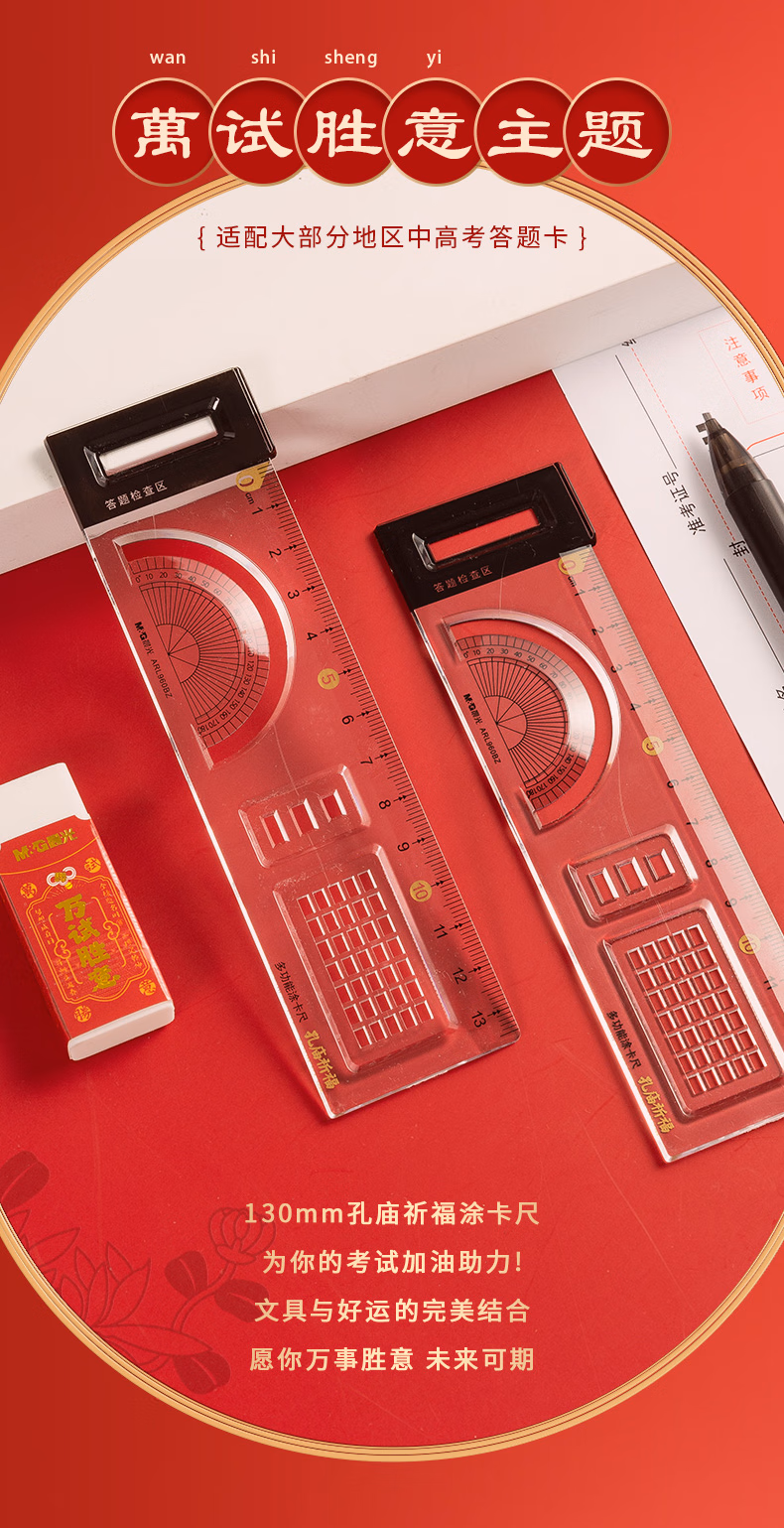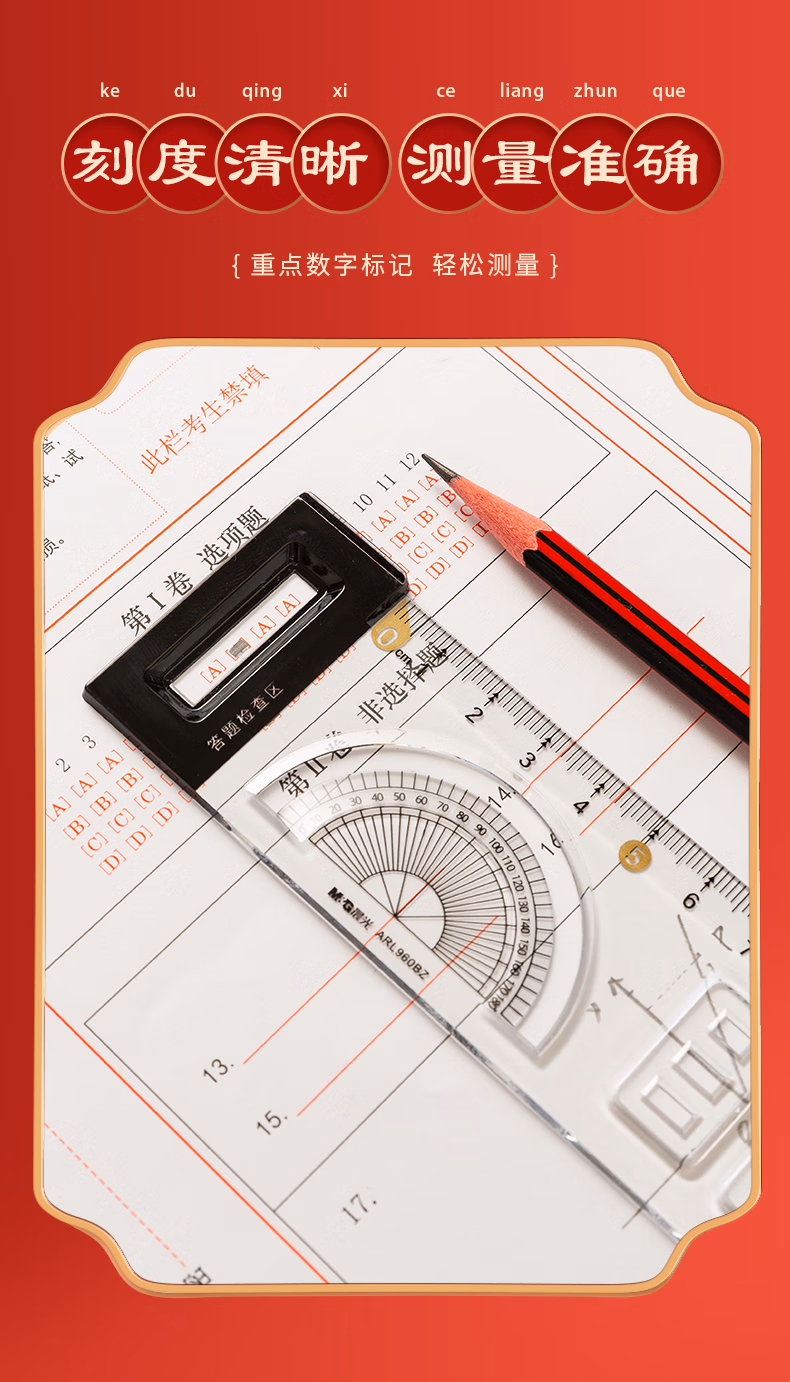 包装清单  :   晨光(M&G)文具孔庙祈福多功能尺子小学生涂卡尺15cm文具考研考试专用 带涂卡框量角器