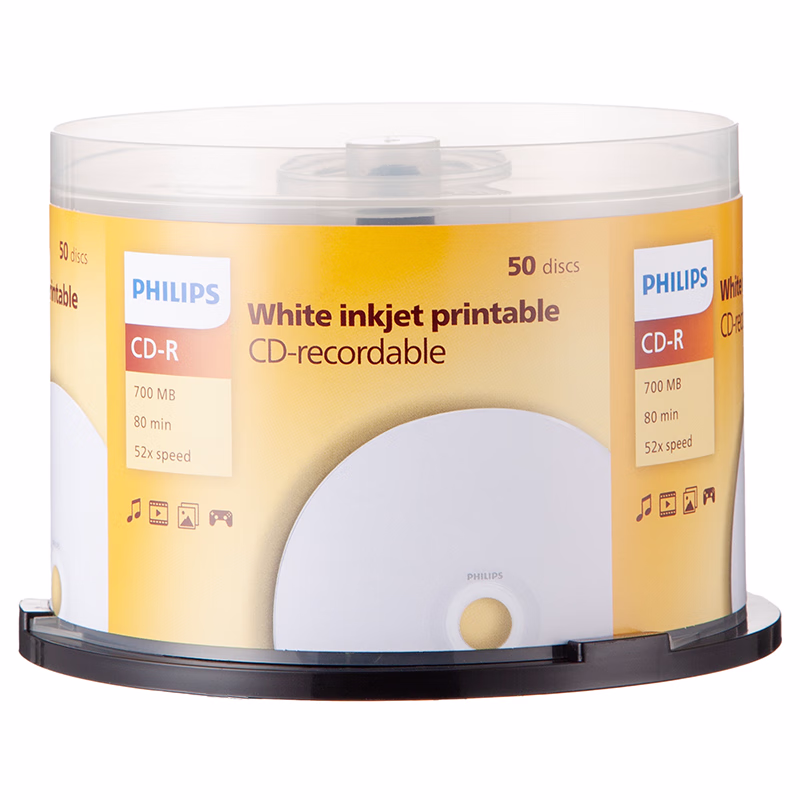 包装清单  :   飞利浦(PHILIPS)CD-R 可打印光盘 空白盘 刻录光盘 碟片 700M 52速 数据存储 50片装
