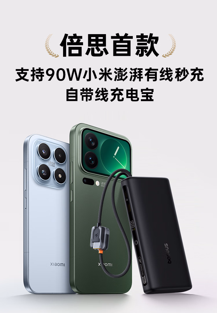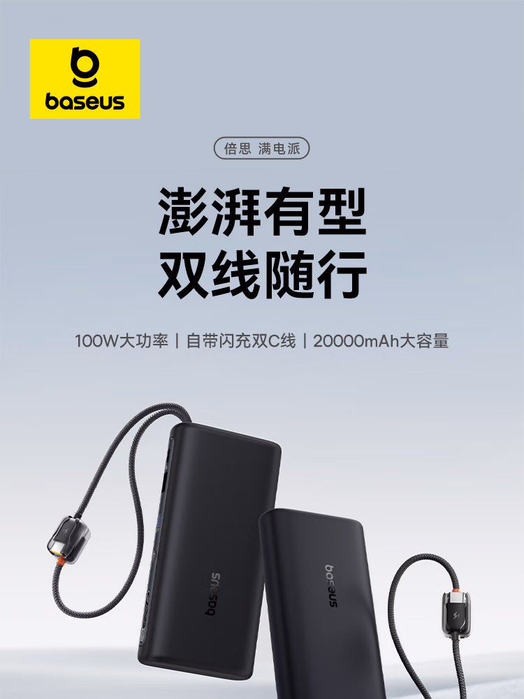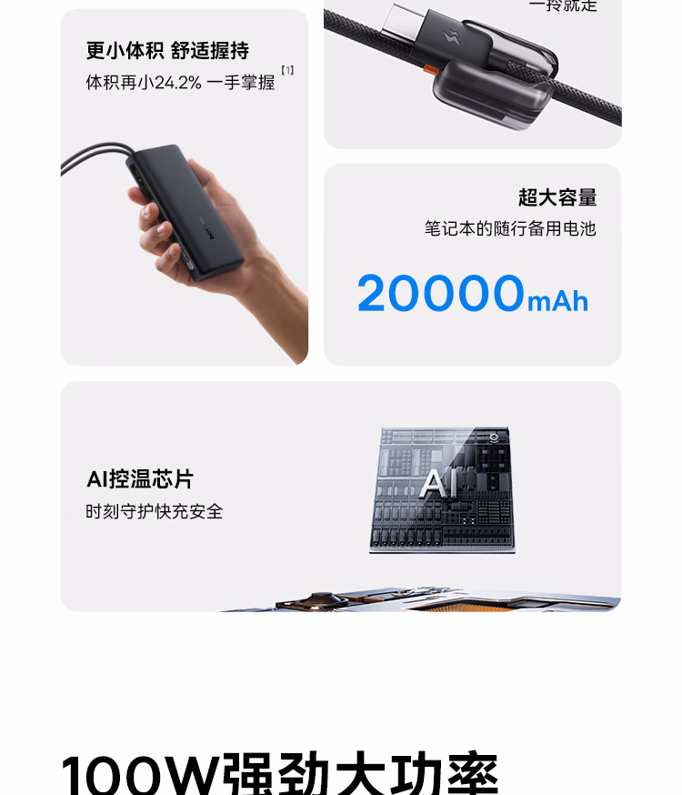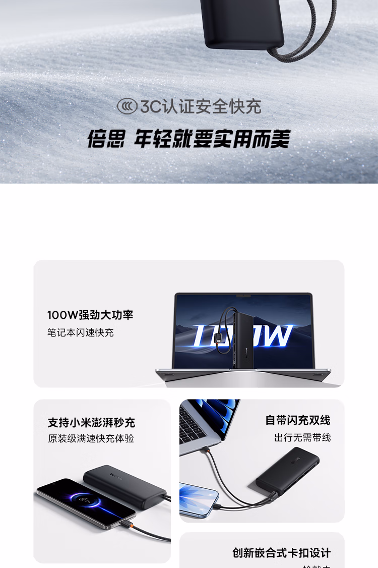 包装清单  :   倍思【3C认证】自带线充电宝20000毫安100W笔记本快充移动电源小巧便携适用于苹果小米17pro华为手机