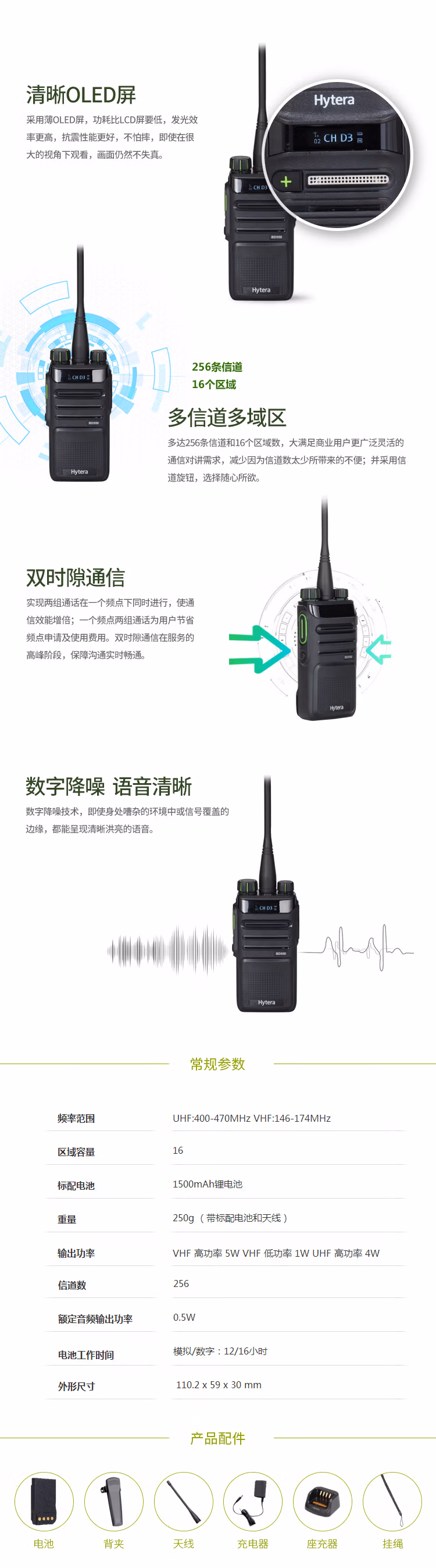 包装清单  :   海能达(Hytera)BD550 U(1) 数字对讲机 商用专业大功率远距离无线手台AMBE++声码器DMR信号