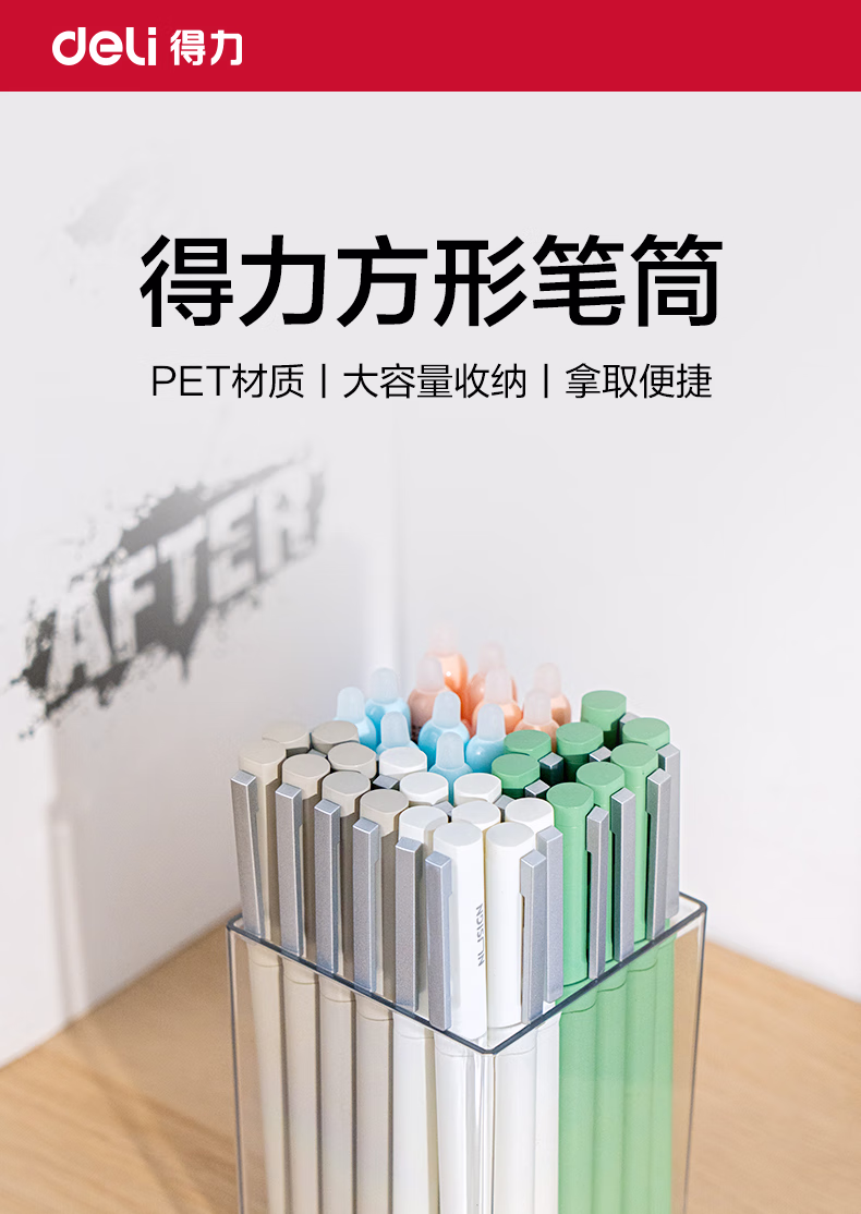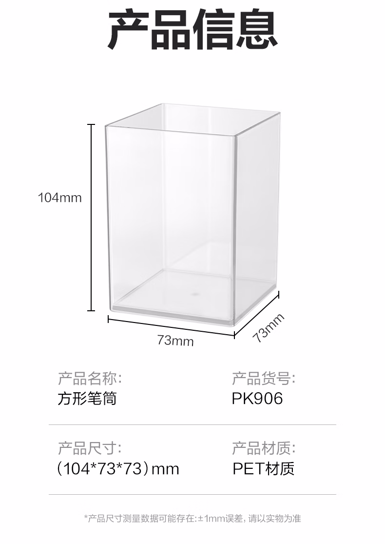 包装清单  :   得力(deli)透明方形笔筒高颜值简约桌面马克笔收纳盒办公文具收纳摆件 PK906