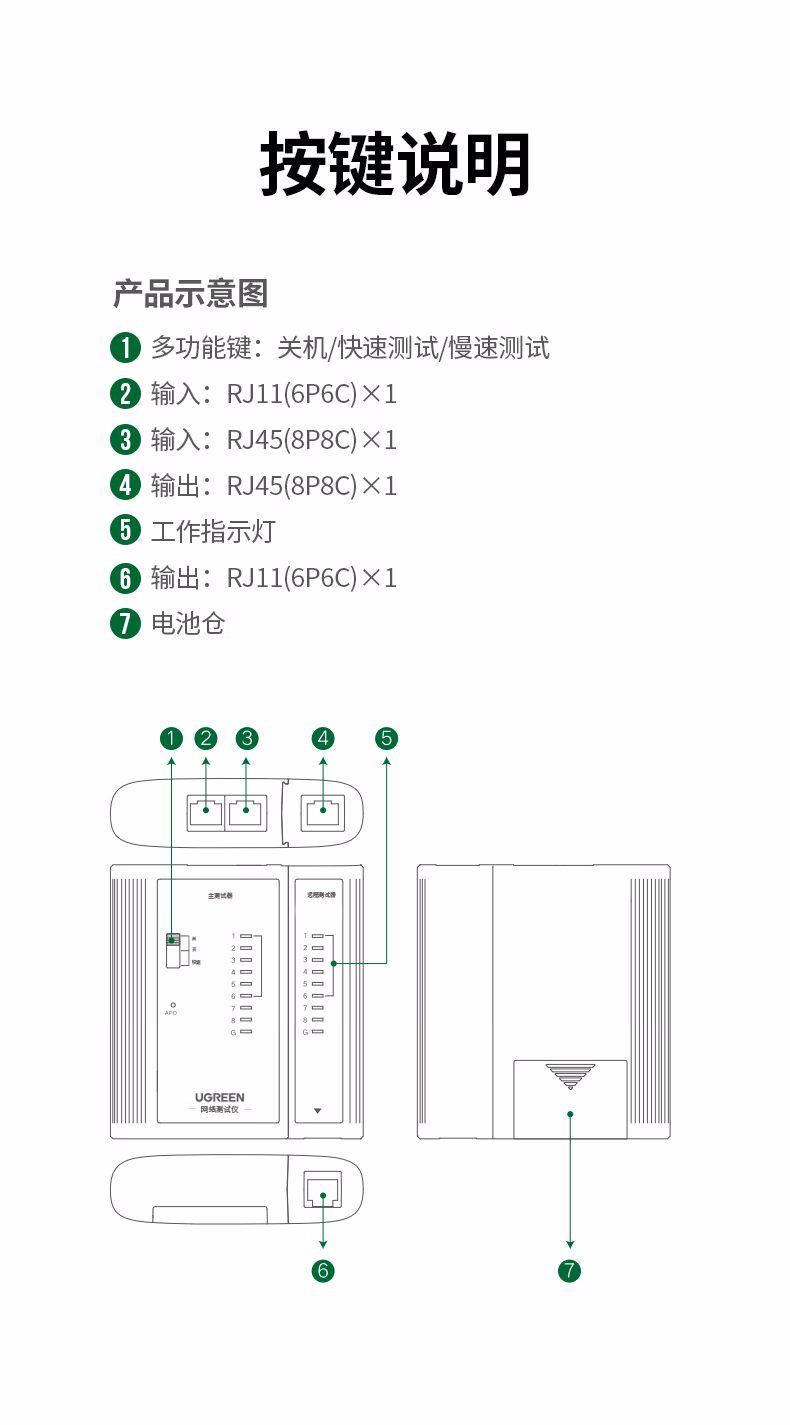 包装清单  :   绿联网线测试仪 多功能网线/电话测线仪 电脑网络水晶头电话线工程/家用智能信号检测通测试仪器通断器