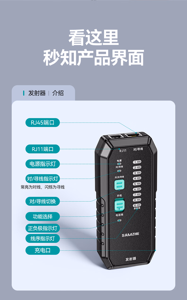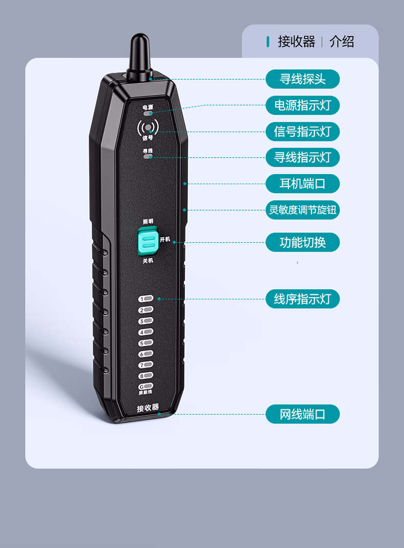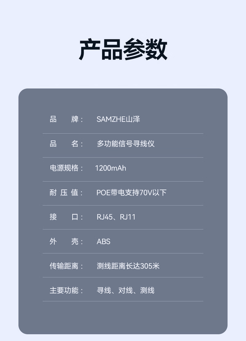 包装清单  :   山泽网络寻线仪寻线器 多功能电话网络测线巡线仪查线器 测通断抗干扰70V耐压寻线套装POE带电SZ-D666